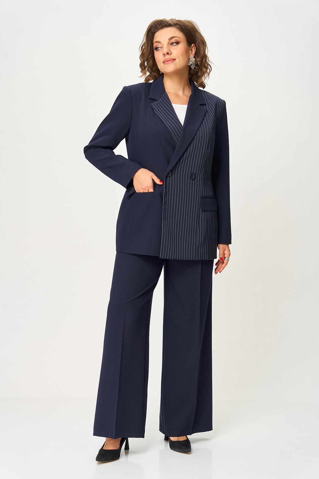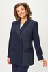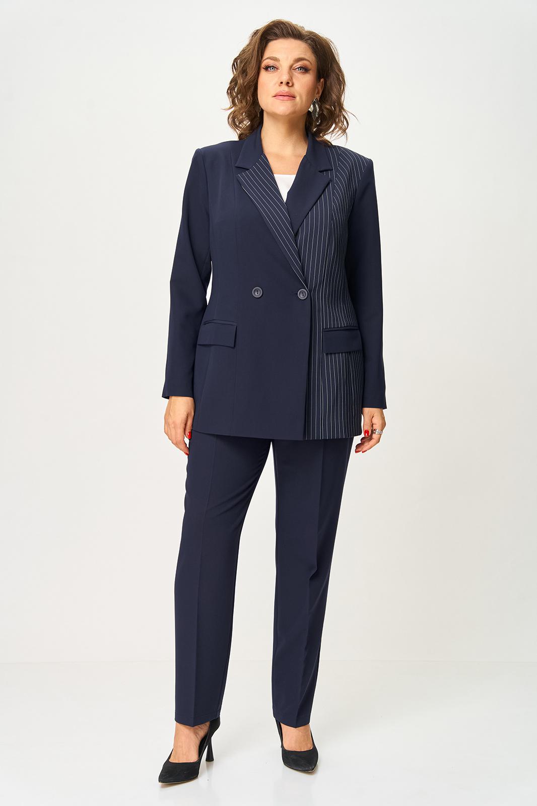 Жакет полуприлегающего силуэта, на подкладке, выполнен из костюмной однотонной ткани, в качестве отделки использована костюмная ткань в полоску.