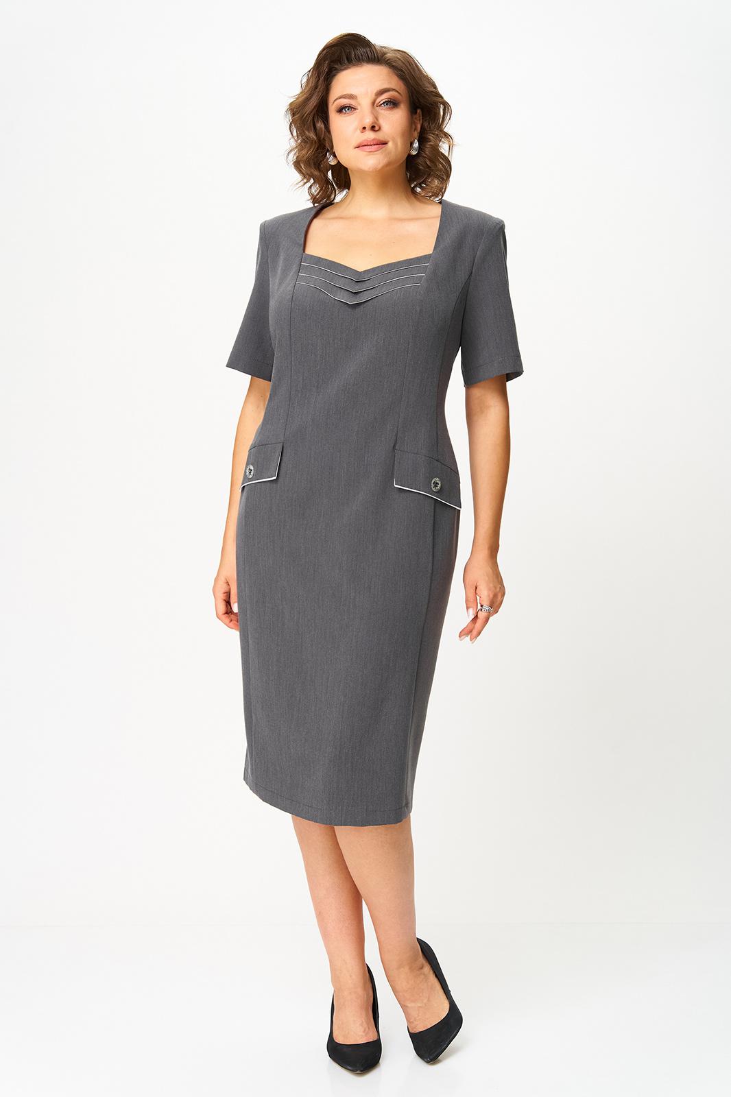 Платье полуприлегающего силуэта, длиной за колено выполнено из однотонной ткани, в качестве отделки использована контрастная по цвету однотонная ткань.