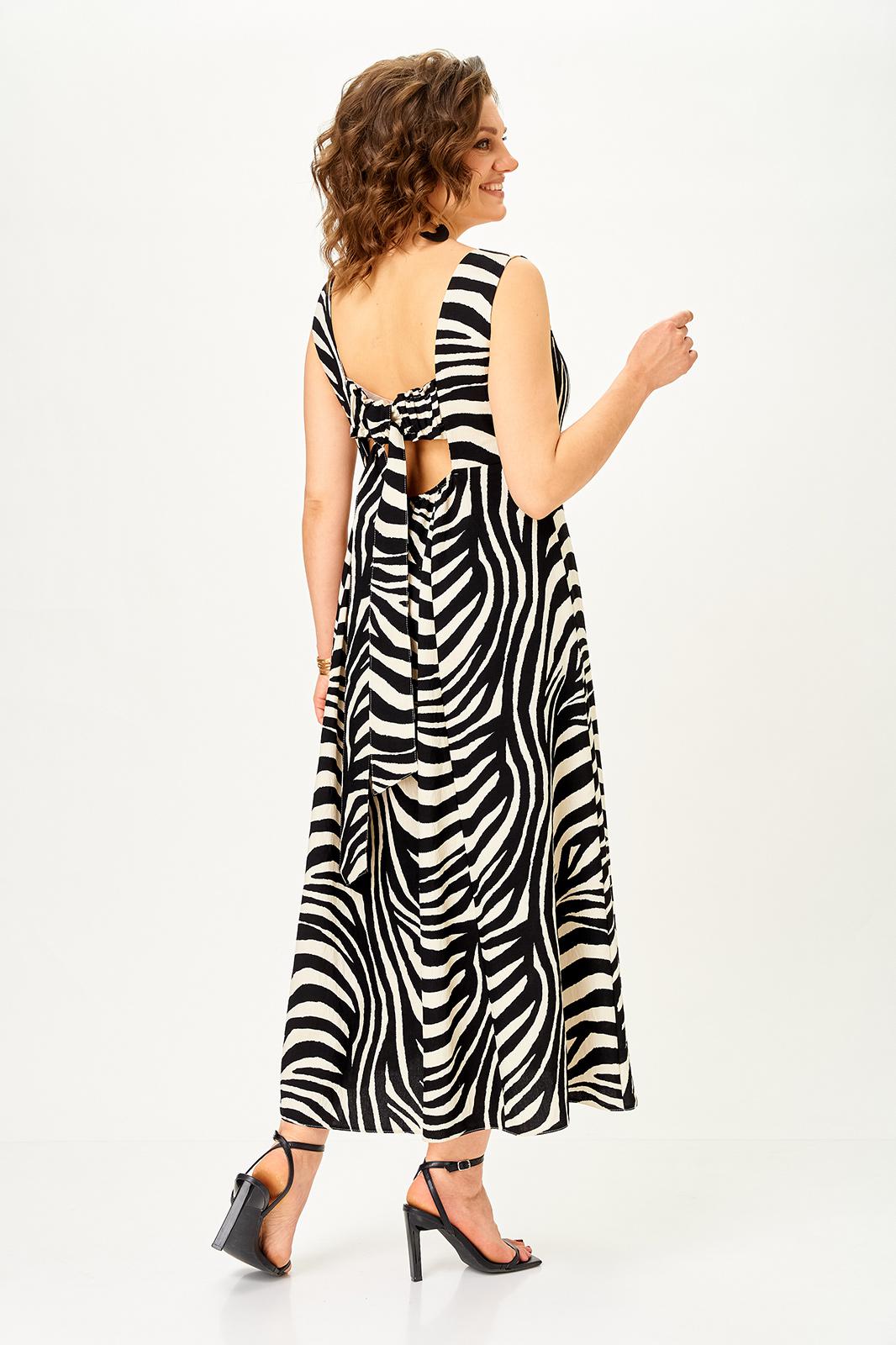 Сарафан А-образного силуэта, длиной макси, выполнено из ткани с набивным рисунком, платье на подкладке.