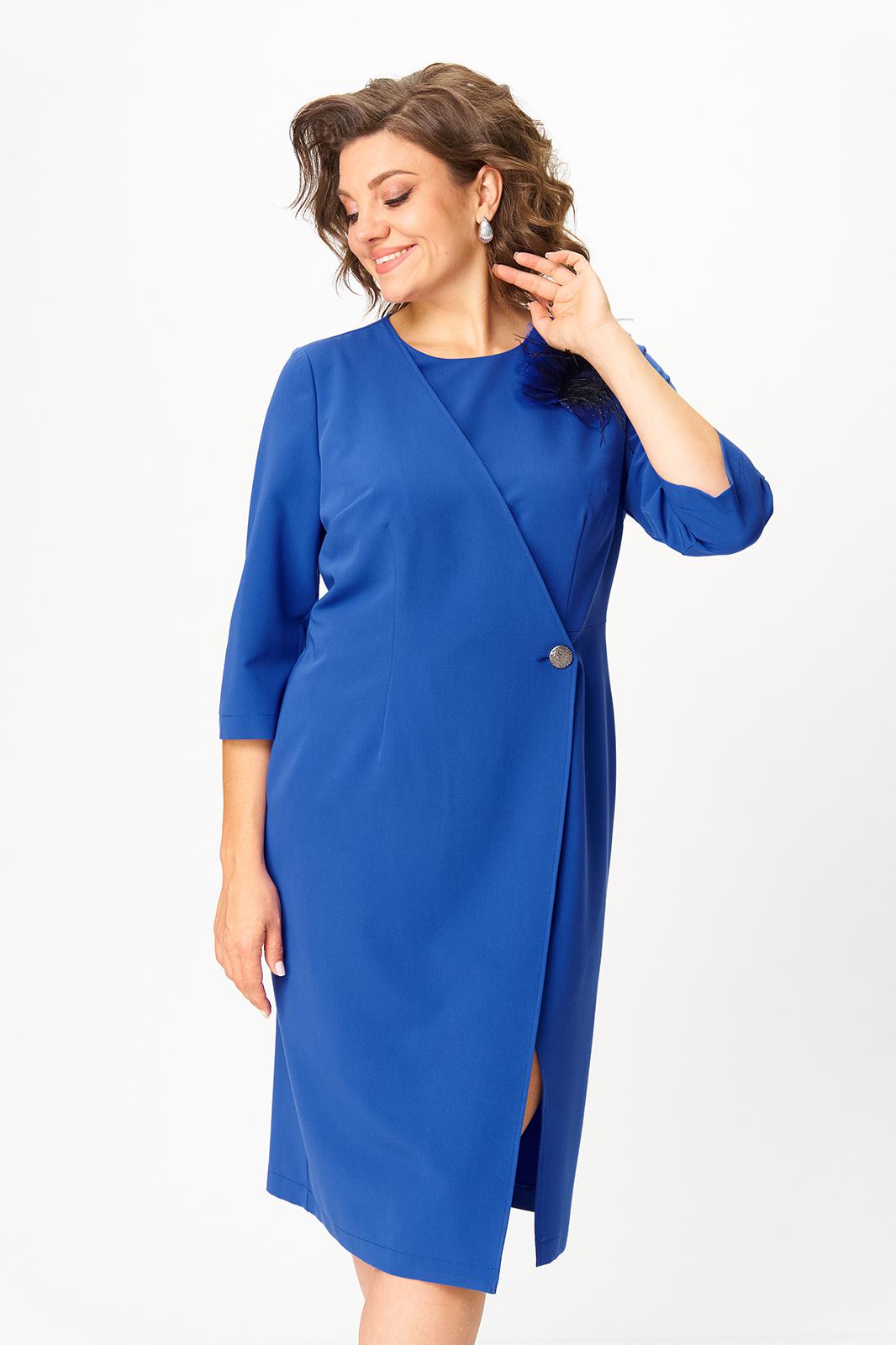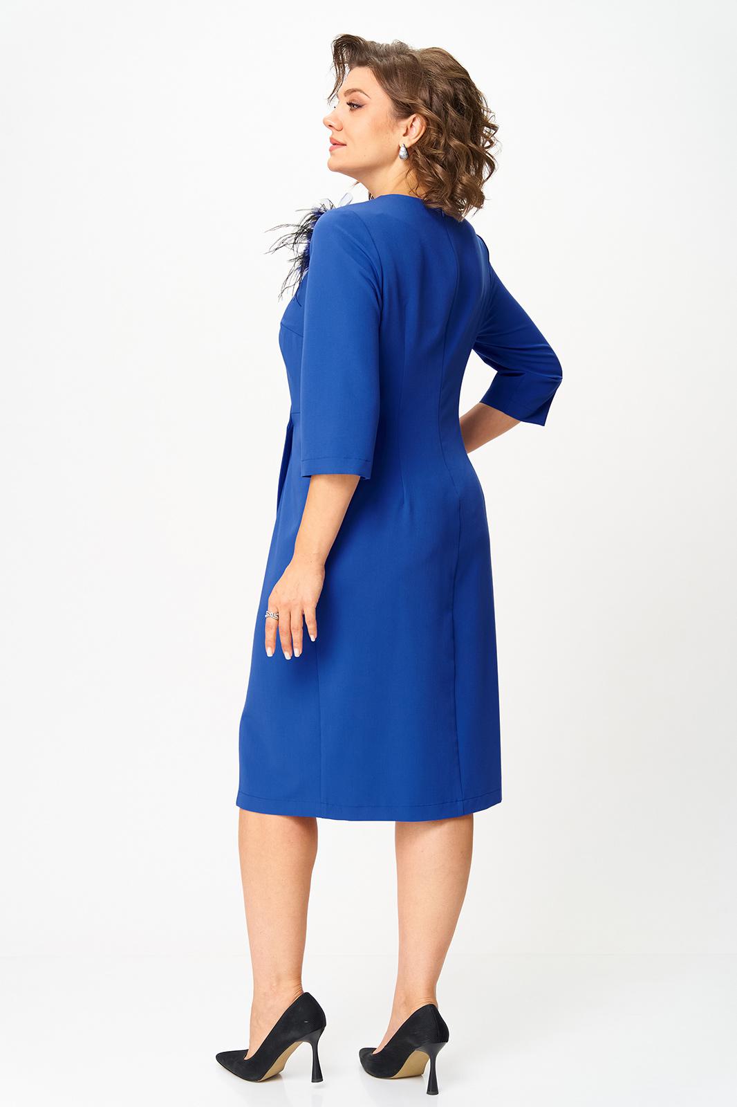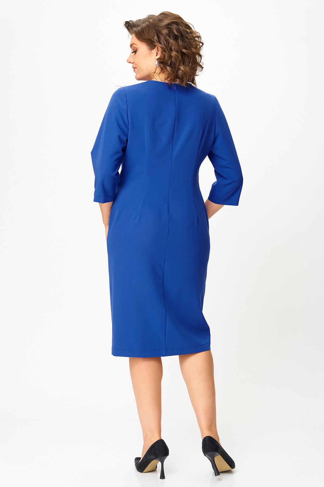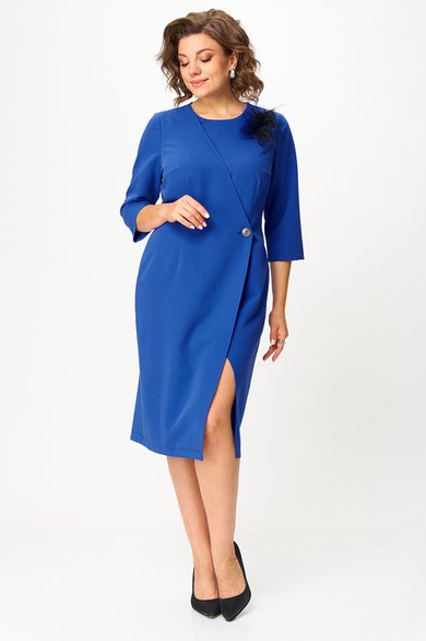 Платье полуприлегающего силуэта, длиной за колено, выполнено из однотонной ткани.
