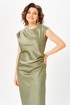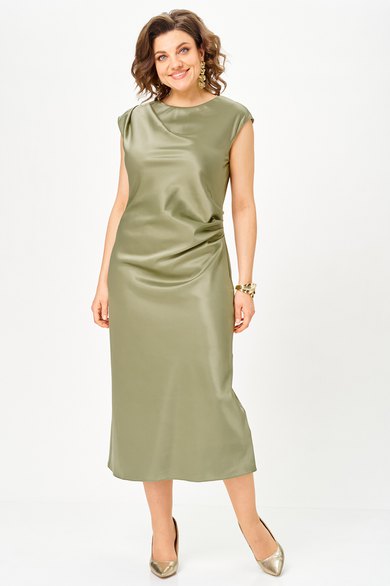 Элегантное и стильное платье от бренда Anastasia Mak идеальный выбор для современной женщины, которая ценит комфорт и стиль. Платье прекрасно подойдет на каждый день, для праздника или вечеринки. Платье полуприлегающего силуэта, длиной за колено, выполнено из однотонной ткани с эффектом атласа. Полочка платья с ассиметричной драпировкой, с правой стороны полочки складки выполнены в области плеча, с левой стороны в боковом шве. Горловина овальной формы. Спинка цельная. Крой платья выполнен по косой, платье без молнии.