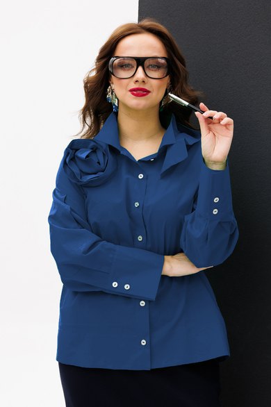 Блузка женская с акцентным декором полуприлегающего силуэта. Рукав летучая мышь с подрезом по линии проймы и односторонними складками и манжетой. Застежка- планка на петли и пуговицы. Воротник стояче-отложной. В качестве декора - дополнительный воротник, плавно переходящий в цветок. Благодаря своему крою станет базовой вещью в вашем гардеробе. Легко сочетается с любыми брюками, юбками, платьями и джинсами. Позволит создать большое количество образов для офиса, прогулок, праздничных мероприятий. Длина блузки (50-54)- 58см, (56-60)-61 см . Длина рукава от горловины с манжетой (50-54)-68см, (56-60)-70см.