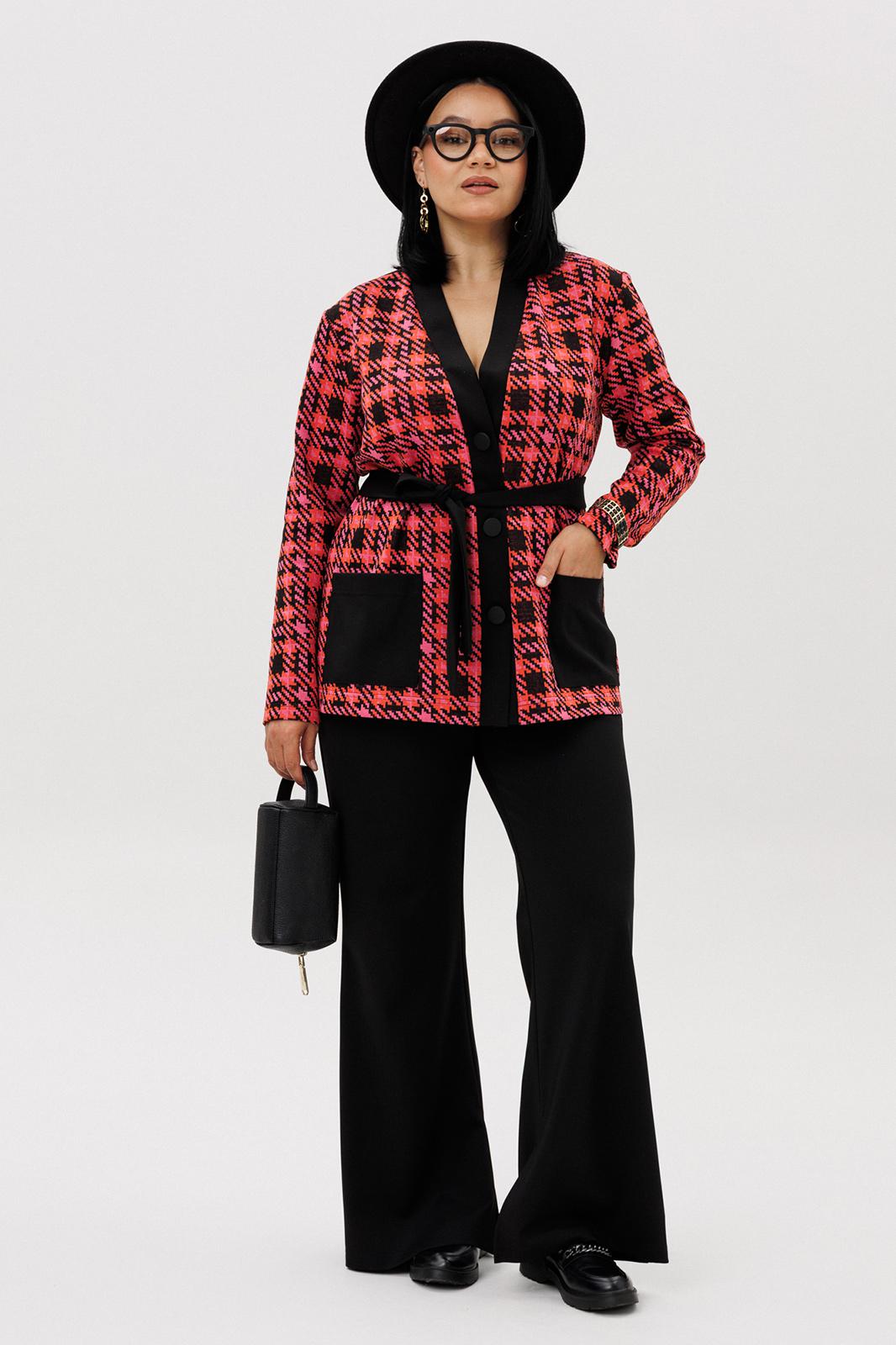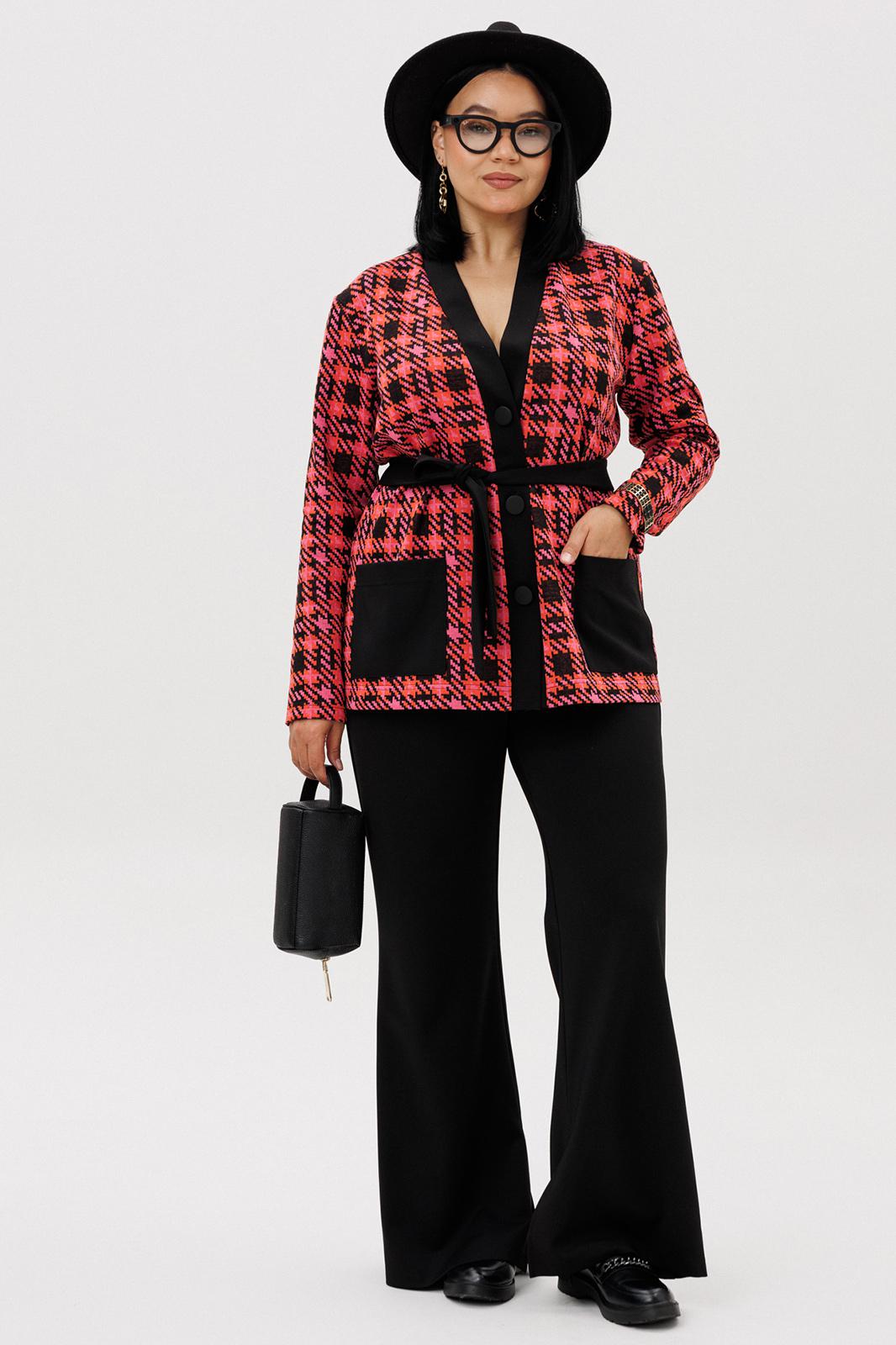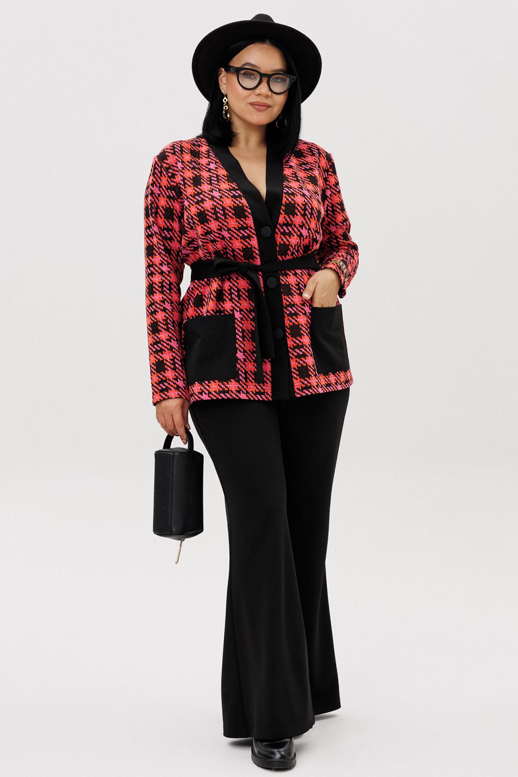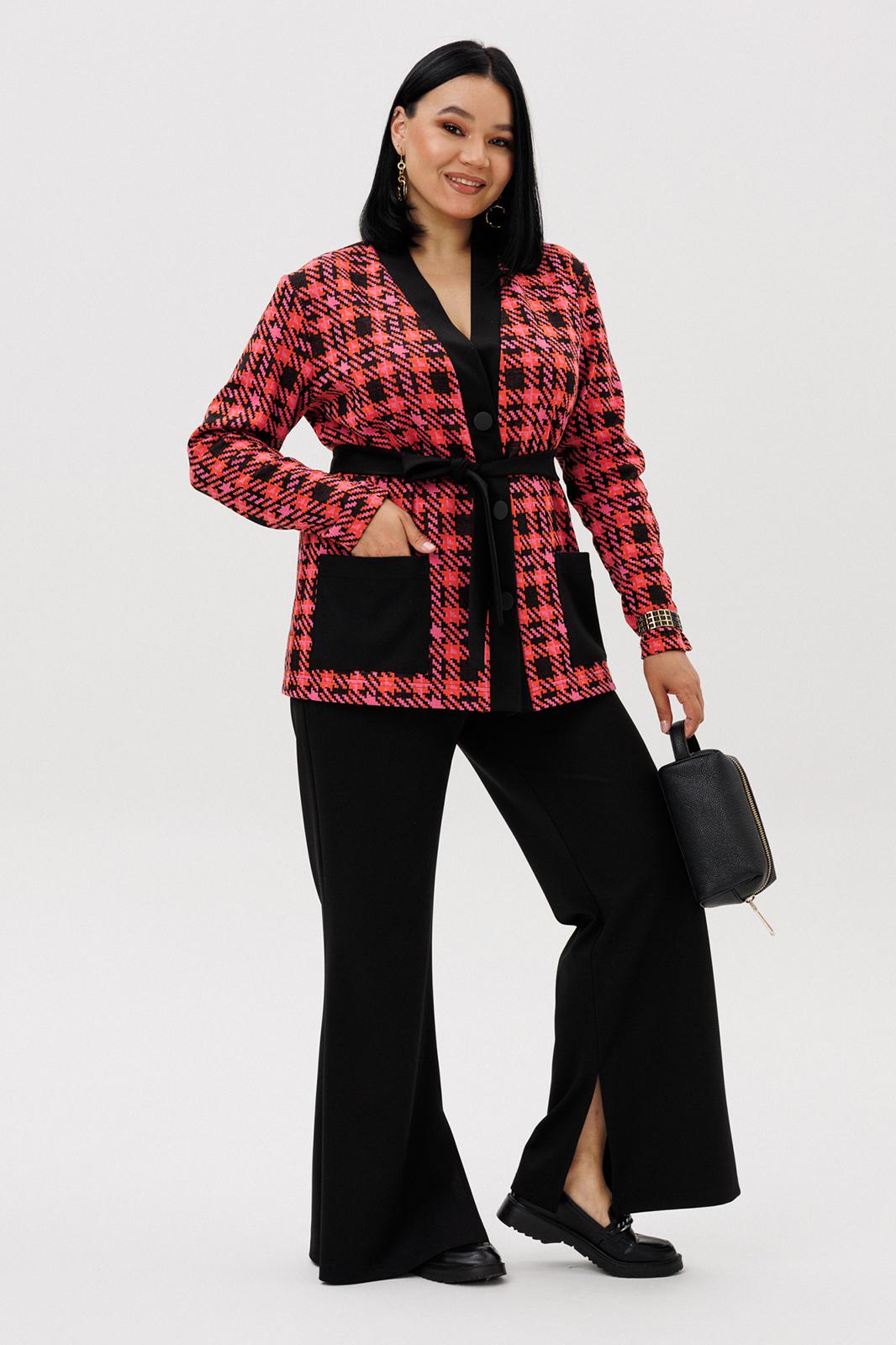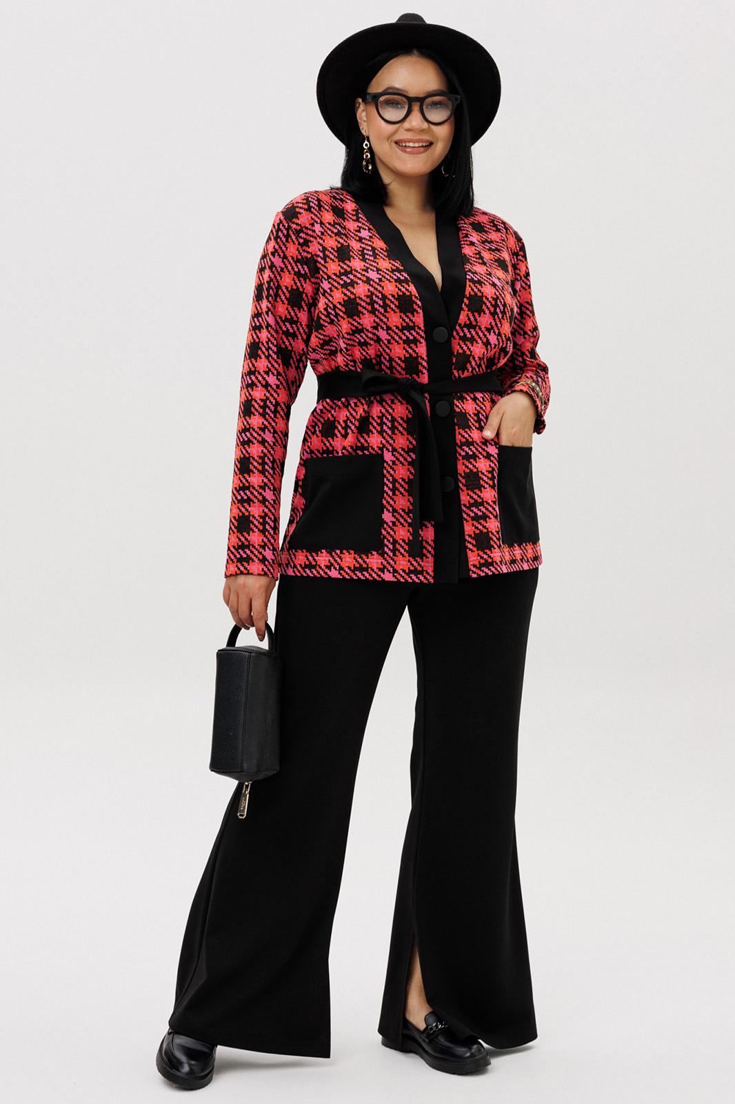 Шикарный трикотажный женский комплект от бренда Anastasia, идеальный для любого случая. Этот комплект сочетает в себе элегантность и комфорт, что делает его подходящим как для деловых встреч или прогулок. Комплект состоит из жакета и брюк. Жакет прямого силуэта. Застежка- планка с пуговицами. По полочке идут накладные карманы. Рукав втачной, одношовный. Подчеркнуть талию можно съемным поясом. В качестве декора- брендированная нашивка на кармане, перекликающаяся с золотыми пуговицами. Стильный комплект отлично подойдет для долгих прогулок или для работы, для офиса. Брюки -клеш, пояс на резинке. По внутреннему срезу по низу идут разрезы. Отдельный части костюма легко будут сочетаться с вещами из Вашего гардероба. Модель можно отнести к стилю кэжуал. Костюм можно носить с туфлями, кроссовками или ботинками. Обязательно добавьте наш бренд в избранное и следите за новинками, распродажами, скидками и акциями! Хороших покупок от «Анастасия». Длина (по спинке):(50-54)- 67см, (56-60)-70 см. Длина рукава: (50-60)- 58 см. Длина брюк: (50-54):- 102 см, (56-60)- 104 см.