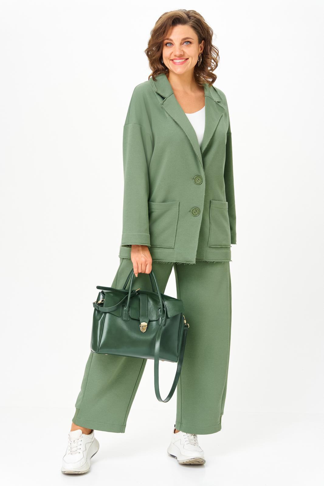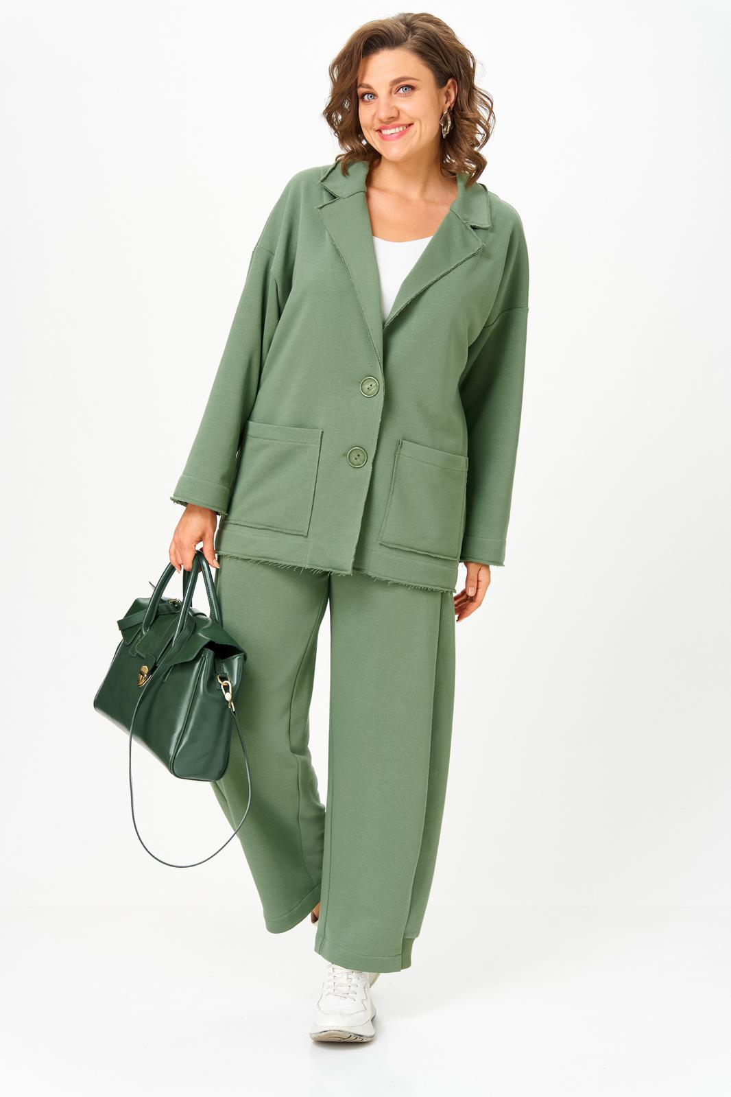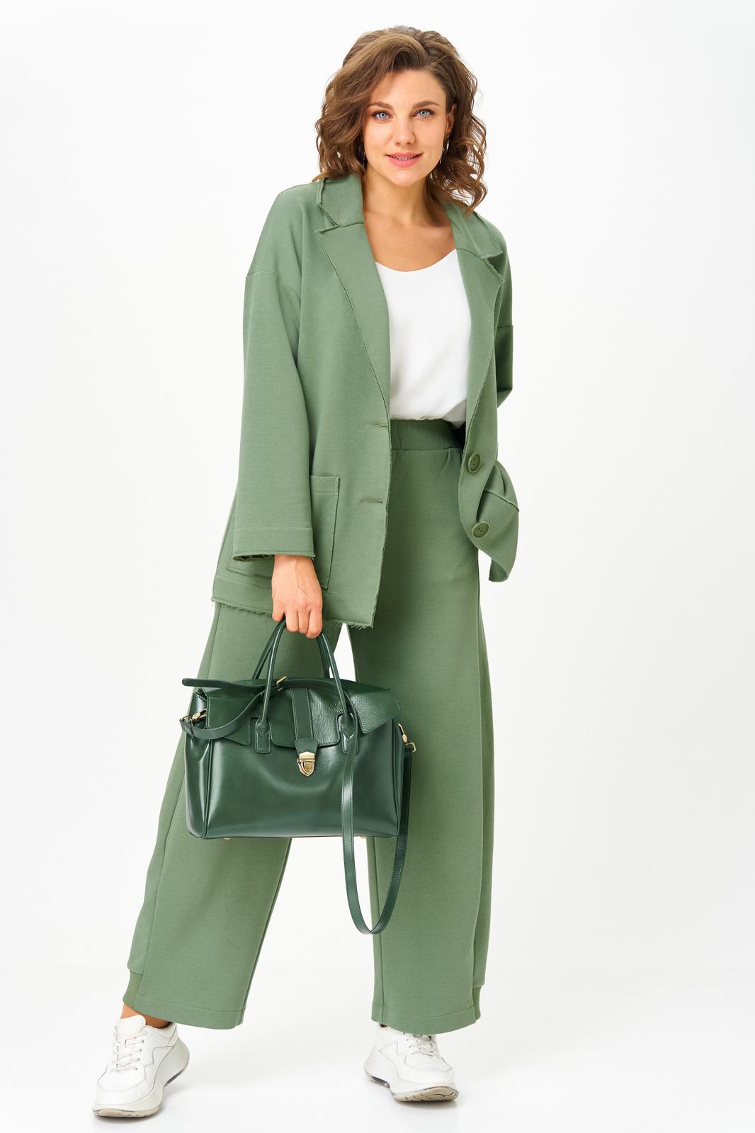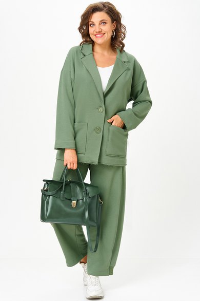 Костюм женский кэжуал (casual) из трикотажного материала трехнитка свободного кроя, который создает расслабленный силуэт -это отличный выбор для активных и стильных деушек и женщин, которые ценят моду и комфорт! Жакет со спущенным плечом. Воротник пиджачного типа, по полочке идут накладные карманы. Жакет без подкладки, мягкий и легкий. Края борта воротника, низов и карманов не обработаны. Застежка на петли и пуговицы. Выполнен в крое Oversize свободной формы и посадкой по фигуре. Если хотите силуэтную посадку, выбирайте на размер меньше. Если хотите посадку свободнее - заказывайте свой размер.