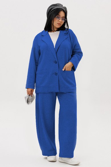 Костюм женский кэжуал (casual) из трикотажного материала трехнитка свободного кроя, который создает расслабленный силуэт -это отличный выбор для активных и стильных деушек и женщин, которые ценят моду и комфорт! Жакет со спущенным плечом. Воротник пиджачного типа, по полочке идут накладные карманы. Жакет без подкладки, мягкий и легкий. Края борта воротника, низов и карманов не обработаны. Застежка на петли и пуговицы. Выполнен в крое Oversize свободной формы и посадкой по фигуре. Если хотите силуэтную посадку, выбирайте на размер меньше. Если хотите посадку свободнее - заказывайте свой размер.
