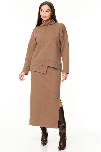Шикарный трикотажный женский комплект от бренда Anastasia, идеальный для любого случая. Этот костюм сочетает в себе элегантность и комфорт, что делает его подходящим как для деловых встреч или домашней одежды, так и для праздничных мероприятий. Комплект состоит из офисной кофты оверсайз, который придаёт ей особую привлекательность. Нежный и теплый материал делает его отличным выбором для осенне-зимнего периода, при этом он легкий, поэтому его можно носить и весной. Джемпер прямого силуэта со спущенным плечом, низ по полочке фигурный, асимметричный и подрез в виде запаха. По низу спинки и полочки идет отрезной пояс. Юбка макси зауженная к низу, по бокам разрезы, пояс отрезной на резинке. Нарядный костюм отлично подойдет для долгих прогулок или для работы, для офиса. Юбка - макси создает чувственный образ благодаря своей длине, придающей женственность и элегантность вашему образу. Это не только универсальная одежда для деловых встреч или прогулок, но и идеальный выбор для различных торжественных мероприятий, подойдет как для взрослых женщин, так и для подростков. Отдельный части костюма легко будут сочетаться с вещами из Вашего гардероба. Модель можно отнести к стилю спортивный кэжуал, оверсайз, спортивный шик. Костюм можно носить с кроссовками, высокими сапогами или ботинками. Длина блузы (по спинке):(50-54)- 61см, (56-60)-63 см. Длина рукава: (50-60)-45см. Длина юбки: (50-60):-90см.