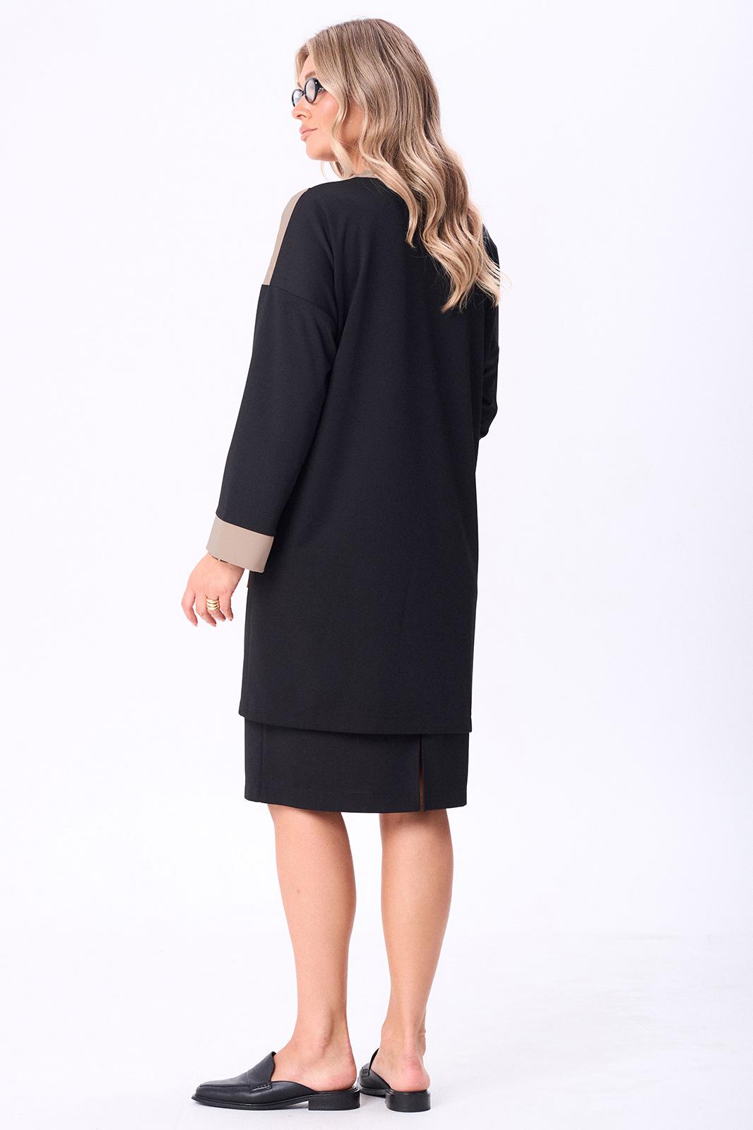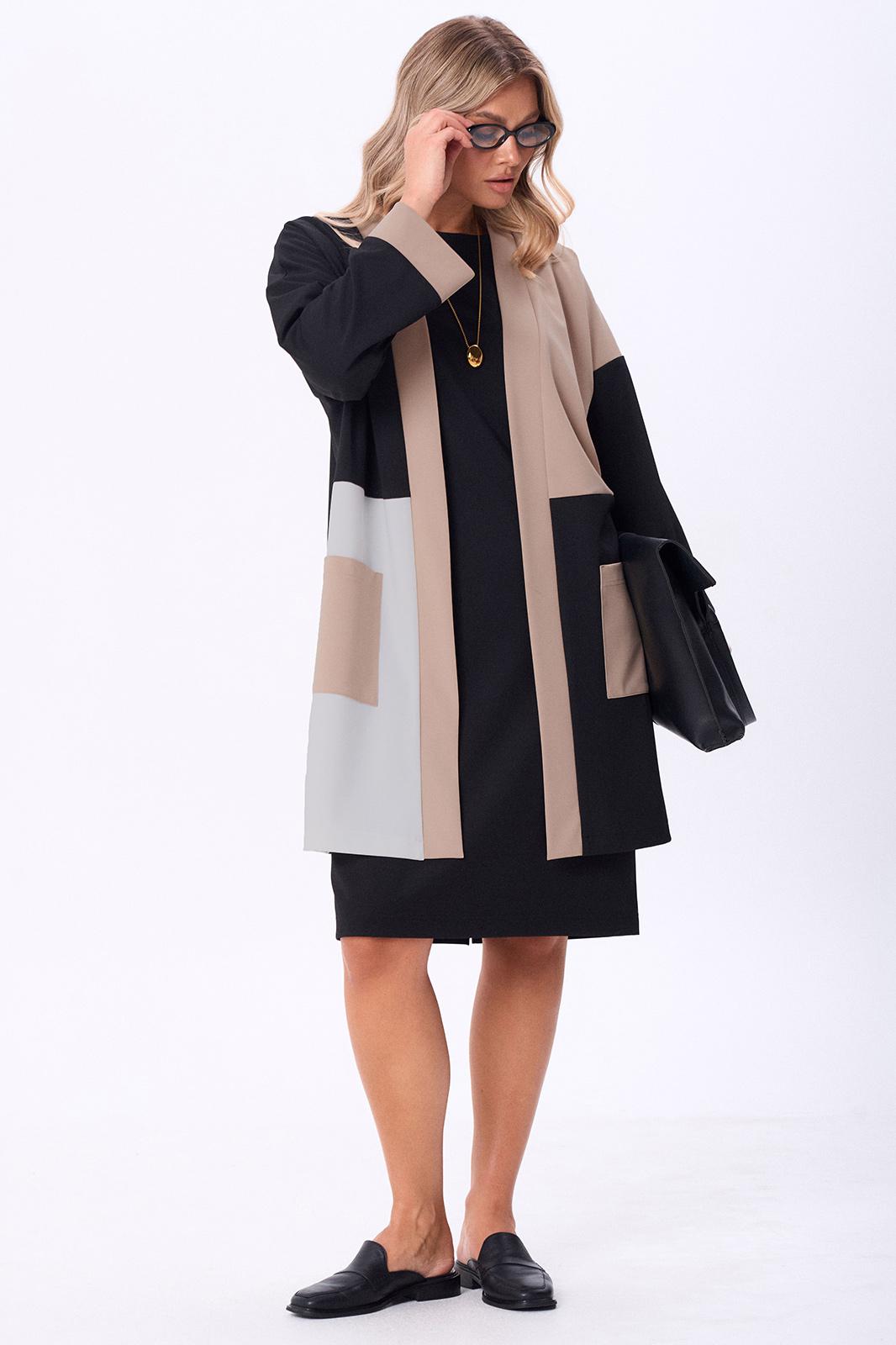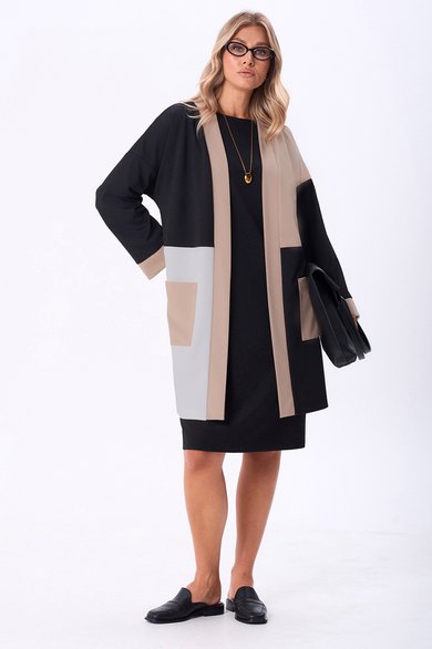 Комплект создан для тех, кто ценит комфорт и элегантность в каждой детали. В комплект входит платье прямного силуэта и кардиган. Ткань не мнется. Благодаря своему крою костюм подойдёт для разных типов фигуры. Он подчеркнёт вашу индивидуальность и станет отличным дополнением к вашему гардеробу. Этот комплект — не просто одежда, это заявление о вашем стиле и вкусе. В нём вы будете чувствовать себя уверенно и комфортно, зная, что выглядите на все сто. Выбирая этот костюм, вы выбираете качество, комфорт и стиль. Классическое черное платье прямого силуэта, со спущенным плечом. Такое платье незаменимая вещь в любом гардеробе. Кардиган прямого силуэта с накладными карманами и спущенным плечом - лекго станет дополнением к любому образую. Длина платья по спинке (50-54) - 100 см, (56-60) - 104 см. Длина рукава: (50-60) - 26 см. Длина кардигана по спинке: (50-54) - 90 см, (56-60) - 93 см. Длина рукава (с манжетой): (50-60)-45см