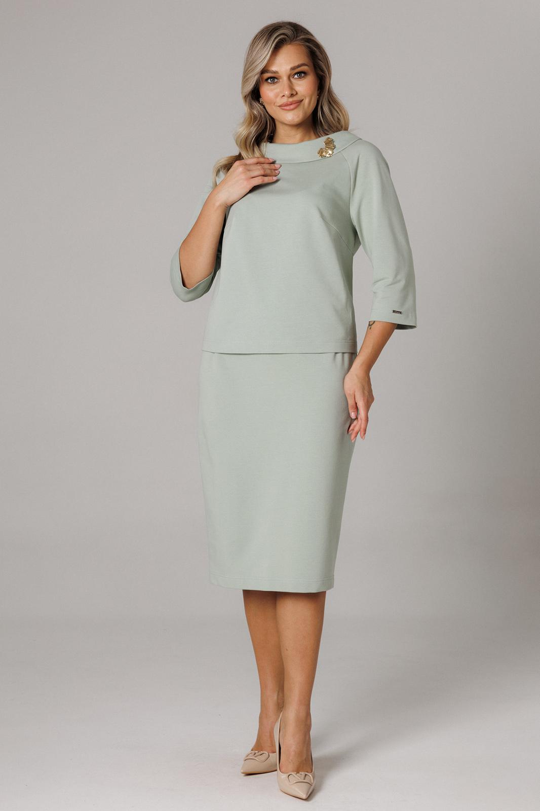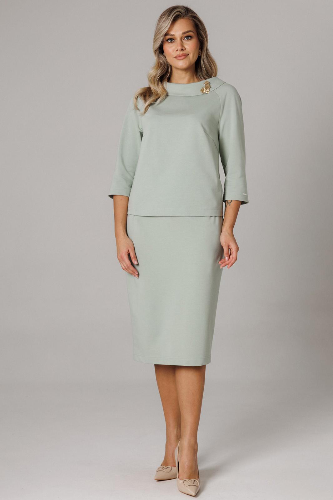 Женский костюм двойка из хлопкового трикотажного полотна станет базой вашего гардероба. Этот деловой комплект с блузкой плюс сайз станет отличным выбором для офисных работников и всех, кто ценит комфорт и стиль в одежде. Юбка без подкладки обеспечивает свободу движения, а длина (миди) делает ее универсальной для любого типа фигуры. Блузка без застежки с воротником шалевой формы - это не только функциональный, но и стильный женственный акцент в образе. Длина рукава в блузке plus size 3/4 делает костюм универсальным. В каччестве декора - брендированная нашивка на рукаве и брошь. Этот классический костюм создан для повседневной носки и будет радовать вас своей мягкостью и комфортом даже в самые холодные дни. Комплект шикарный и создан с учетом особенностей женской фигуры и идеально подойдет для обладательниц пышных форм, для высоких и невысоких. Он одинаково хорошо смотрится на стройных и плюс сайз, с большой и маленькой грудью. Благодаря своему строгому и элегантному дизайну, юбочный костюм станет незаменимым элементом вашего гардероба и поможет создать множество деловых и вечерних образов. Комплект без подклада, не на флисе, без начеса, ткань не просвечивает. Брошь в комплекте. Длина блузки-53см. Длина рукава (от горловины) - 55 см. Длина юбки-72 см.