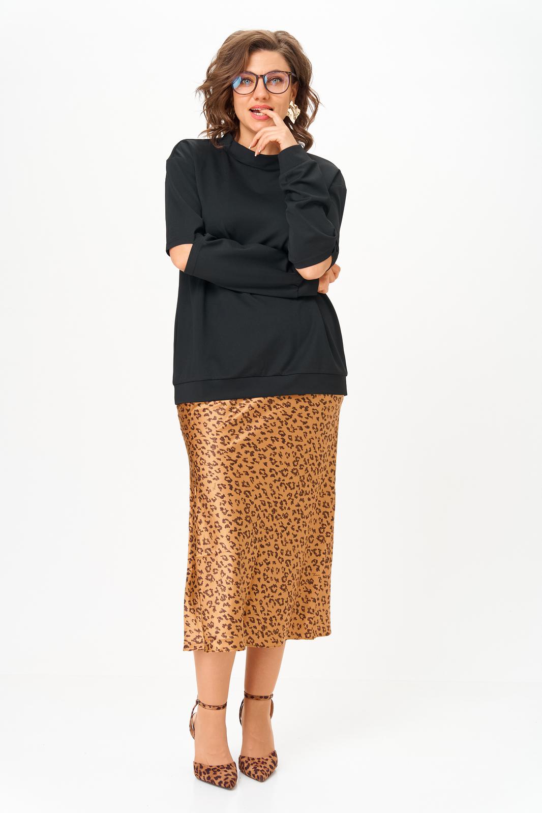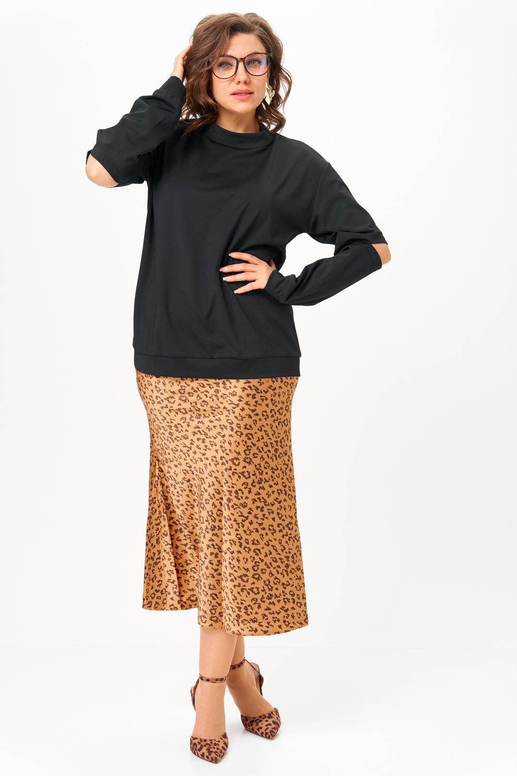 Оригинальный женский комплект от бренда Anastasia, идеальный для любого случая. Этот комплект сочетает в себе элегантность и комфорт, что делает его подходящим как для повседневной носки, так и для праздничных мероприятий. Джемпер оверсайз из трикотажного полотна. Прямого силуэта со спущенным плечом. Воротник-стойка. По рукаву идет подрез с разрезом. Низ рукава и низ джемпера - на манжете. Джемпер лекго сочетается с любыми низами: брюки, джинсы, юбка. Юбка из атласа - идеальный выбор для изысканного гардероба! Этот миди-силуэт подойдет как для офисного стиля, так и для вечерних выходов. Благодаря резинке на талии, эта юбка подходит беременным. Шелковый атлас придает изделию шик и дорогой вид. Фасон универсален, а использование резинки на поясе повышает комфортность носки, позволяя юбке адаптироваться под индивидуальные особенности фигуры. Юбку легко сочетать с различными верхами: топ, блузка, футболка, кружевной жакет, свитер или жакет из тексиля - все это позволит создавать различные образы на разные случаи. Длина по спинке 68см. Длина рукава (с манжетой): 60см. Длина юбки: 91 см