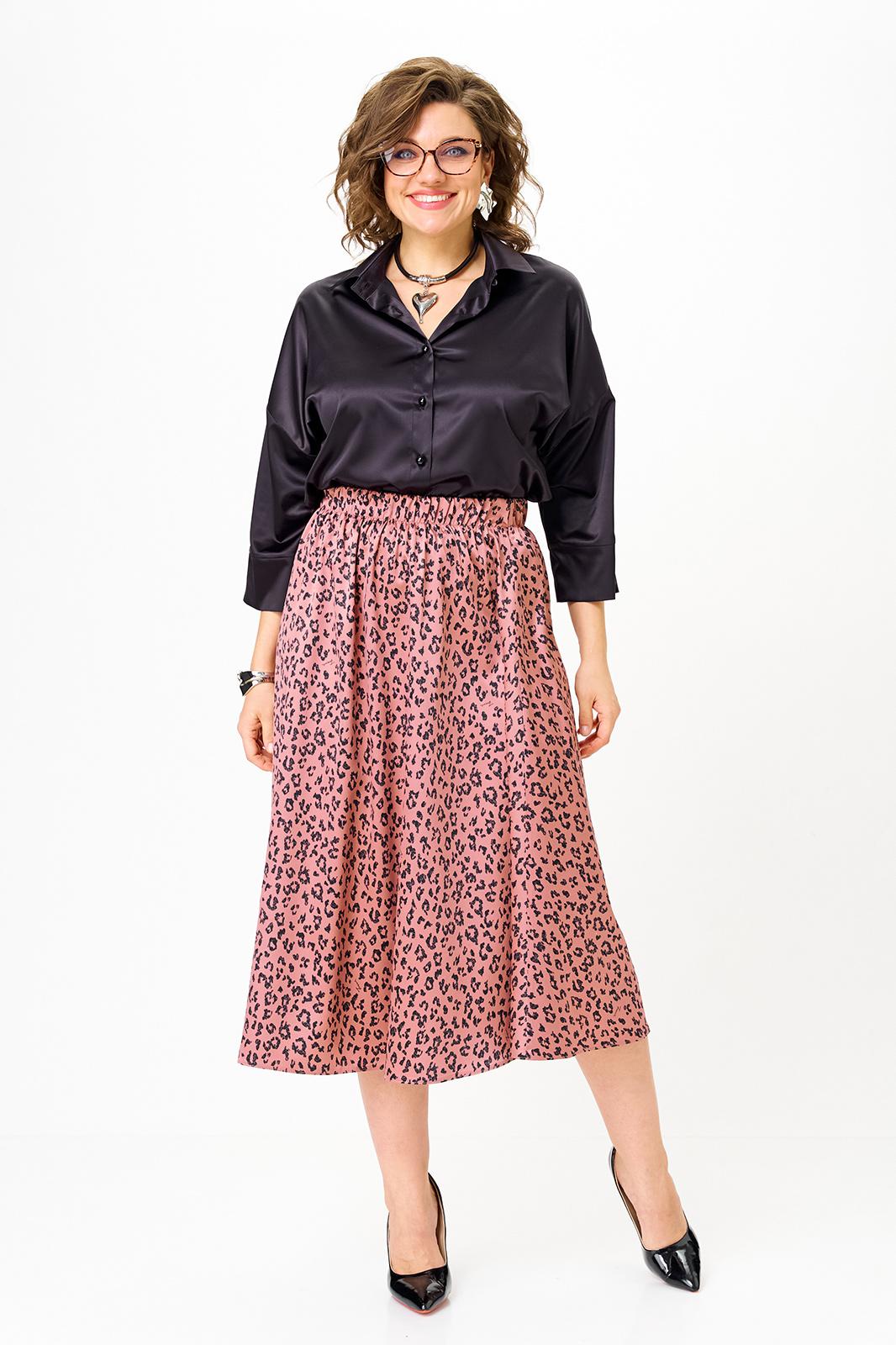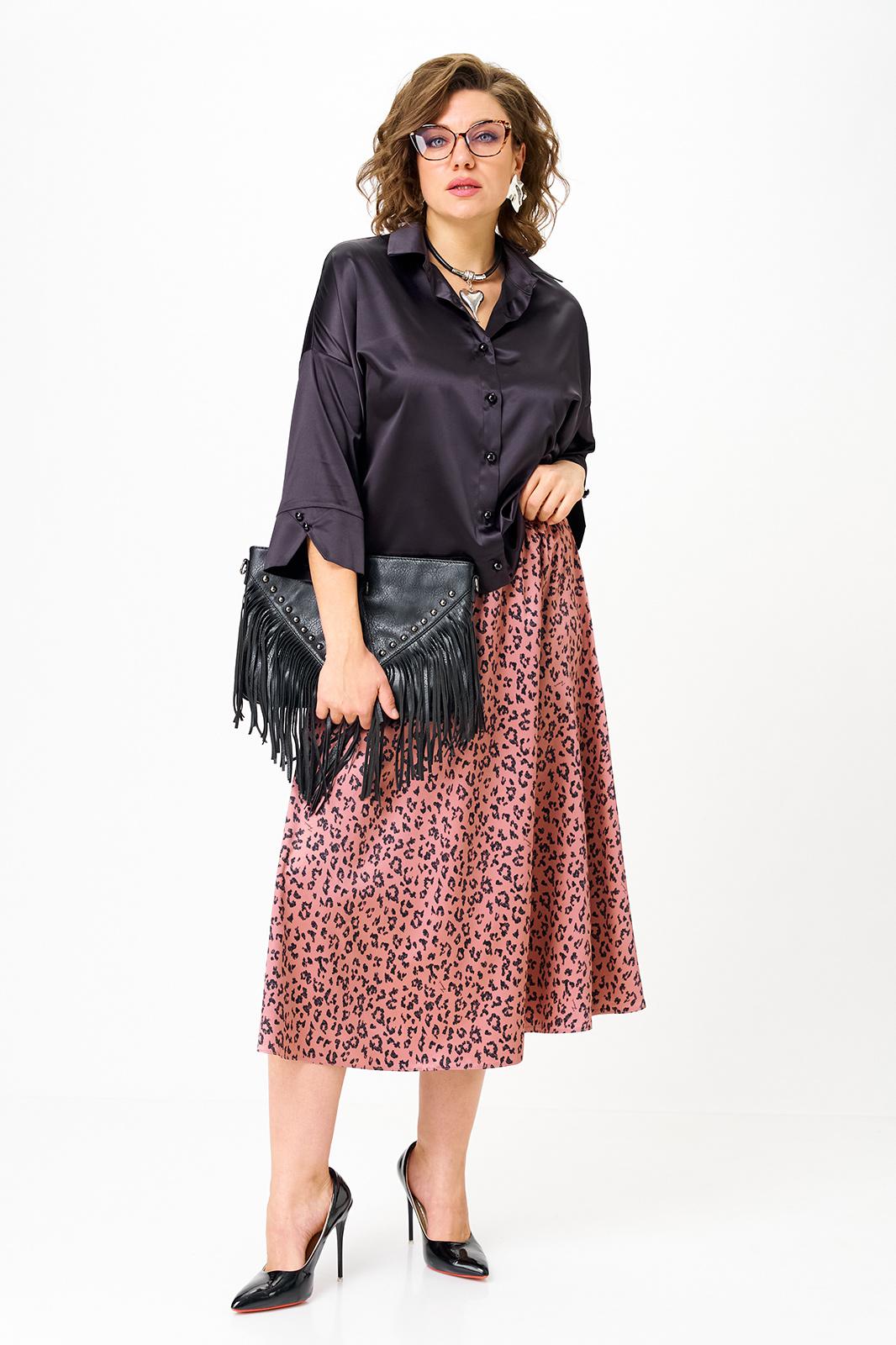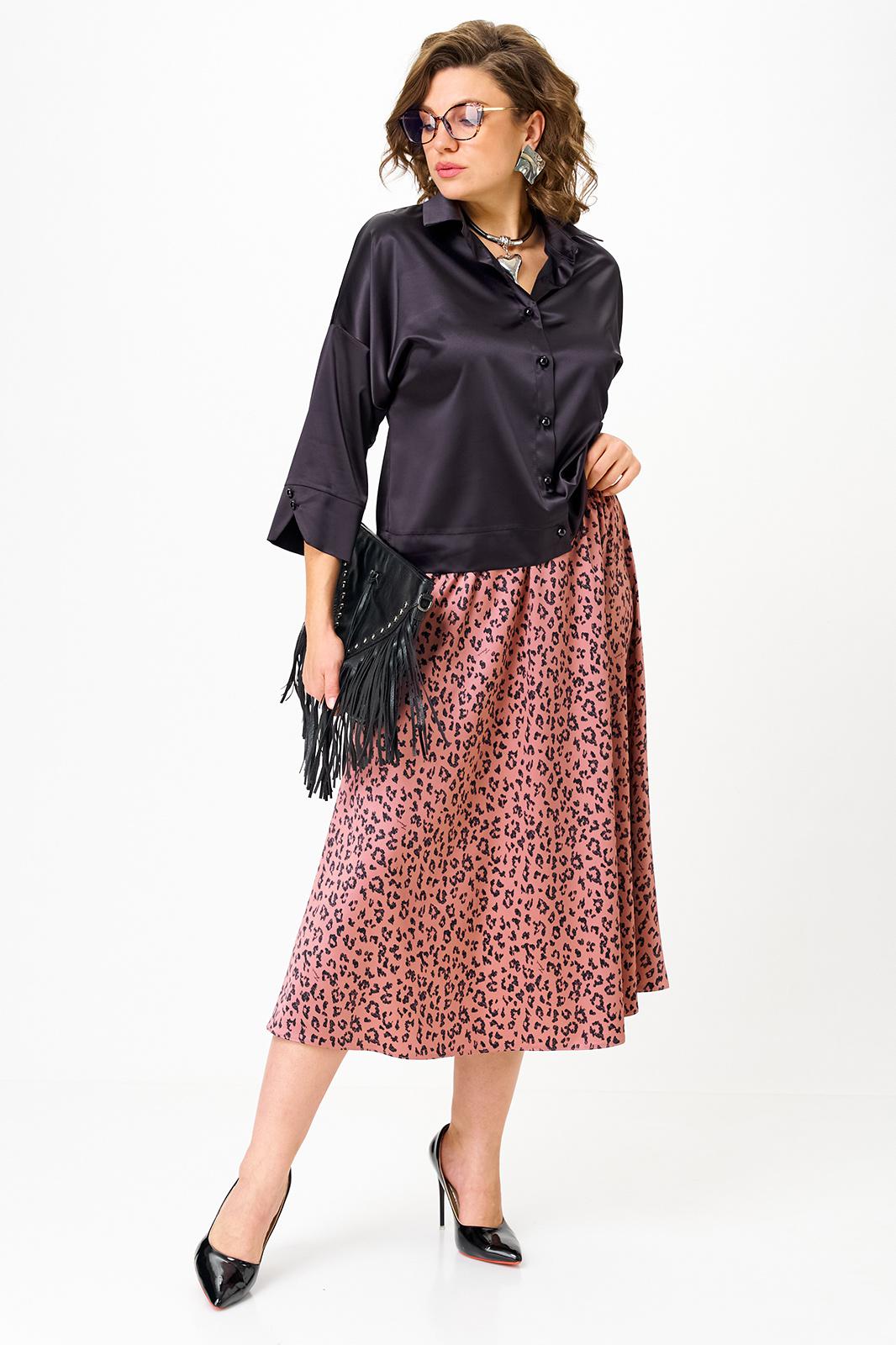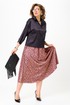 Комплект женский 2-х предметный (блузка, юбка). Отлично подойдет на любой тип фигуры, подчеркнет вашу женственность. Блузка из атласной ткани прямого силуэта со спущенным плечом. Застежка- планка на петли и пуговицы. Воротник на отрезной стойке. Рукав одношовный, втачной, 3/4 длины с манжетой. В качестве декора- по манжете пуговицы, по низу блузки широкая подгибка с отстрочкой. Юбка расширенная к низу. Пояс на резинке. Отдельные части комплекта будут лекго сочитаться с вещами из вашего гардероба. Длина блузки (50-54)- 53см, (56-62)- 55см . Длина рукава (50-62)-32см. Длина юбки (50-62)-91см.