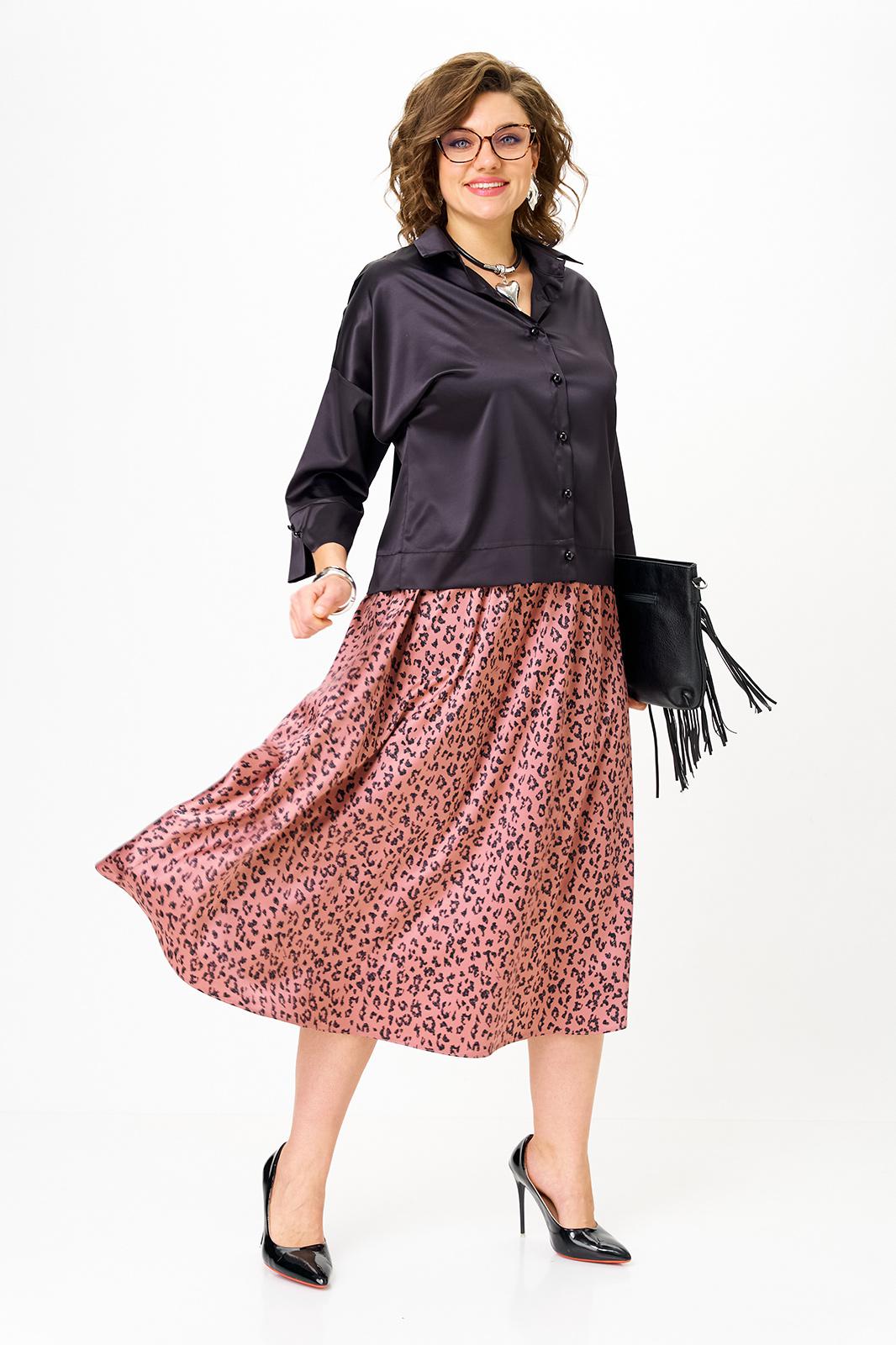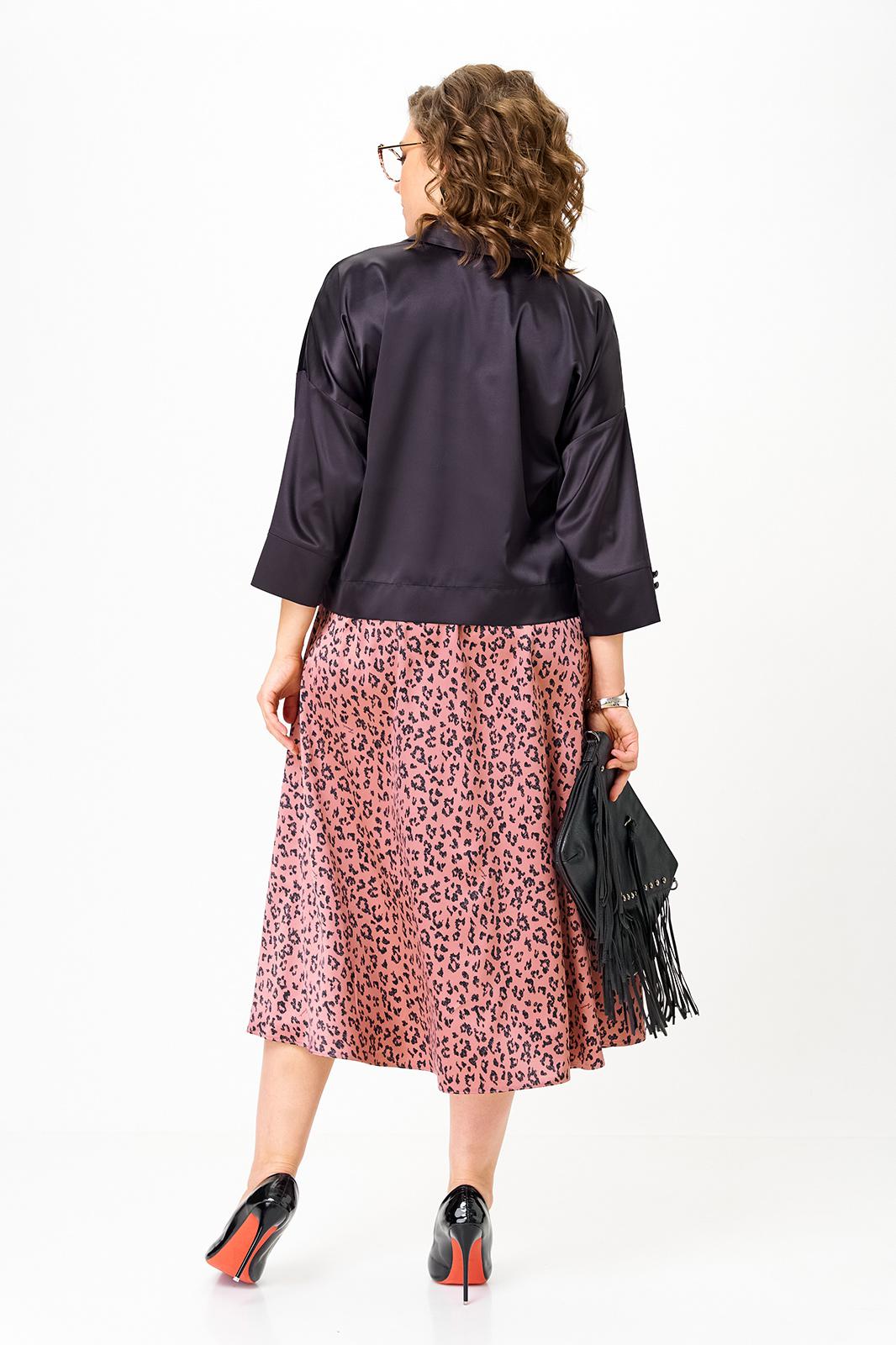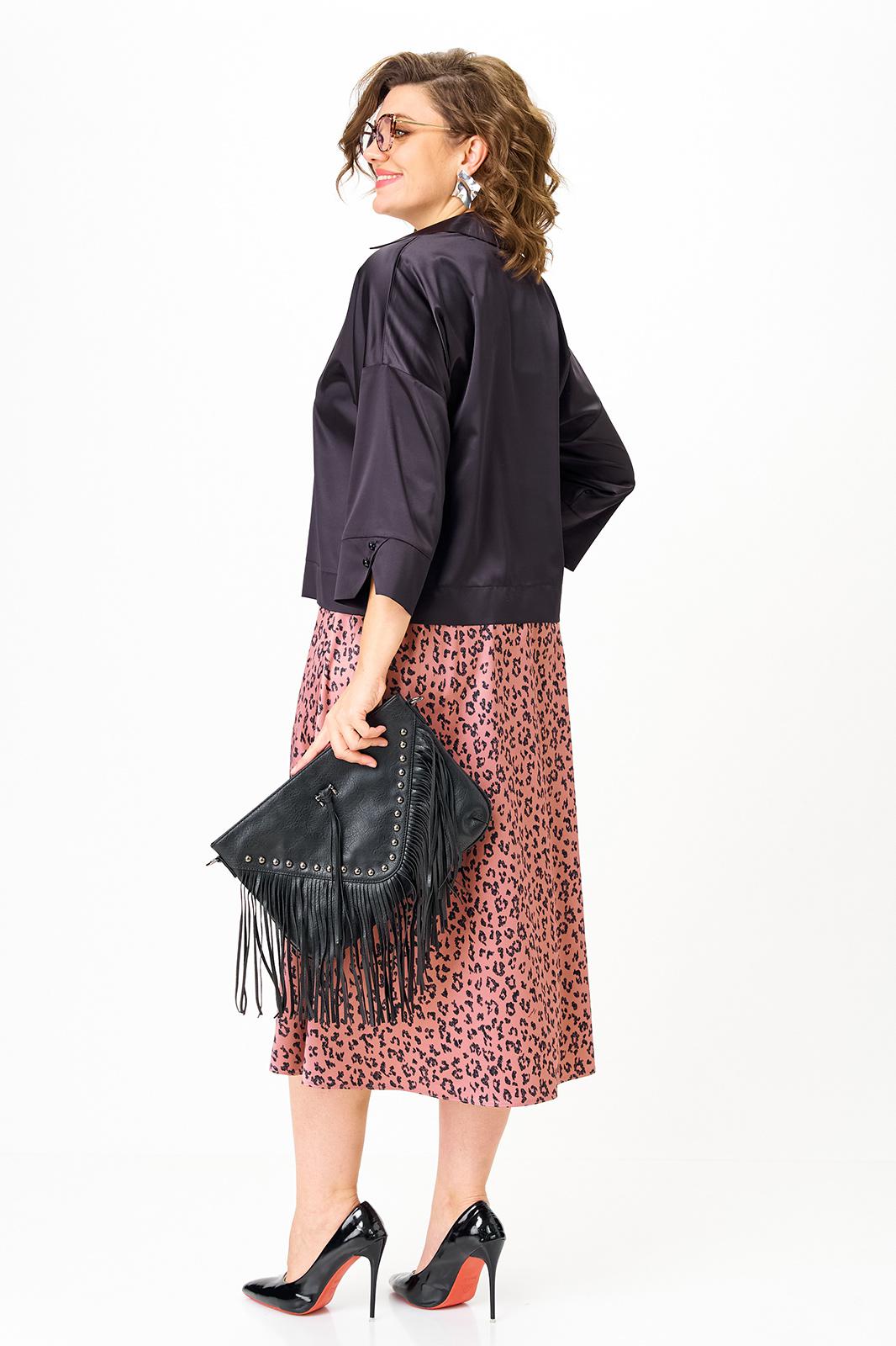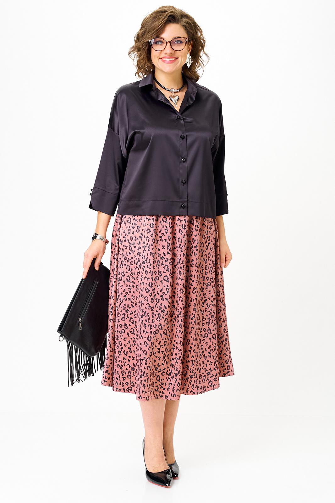 Комплект женский 2-х предметный (блузка, юбка). Отлично подойдет на любой тип фигуры, подчеркнет вашу женственность. Блузка из атласной ткани прямого силуэта со спущенным плечом. Застежка- планка на петли и пуговицы. Воротник на отрезной стойке. Рукав одношовный, втачной, 3/4 длины с манжетой. В качестве декора- по манжете пуговицы, по низу блузки широкая подгибка с отстрочкой. Юбка расширенная к низу. Пояс на резинке. Отдельные части комплекта будут лекго сочитаться с вещами из вашего гардероба. Длина блузки (50-54)- 53см, (56-62)- 55см . Длина рукава (50-62)-32см. Длина юбки (50-62)-91см.