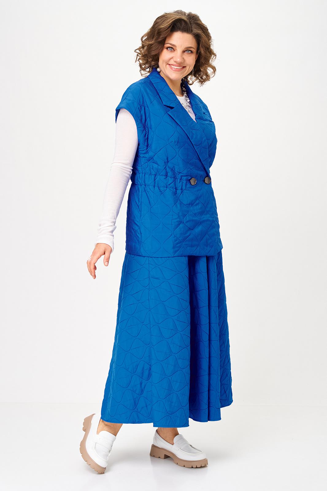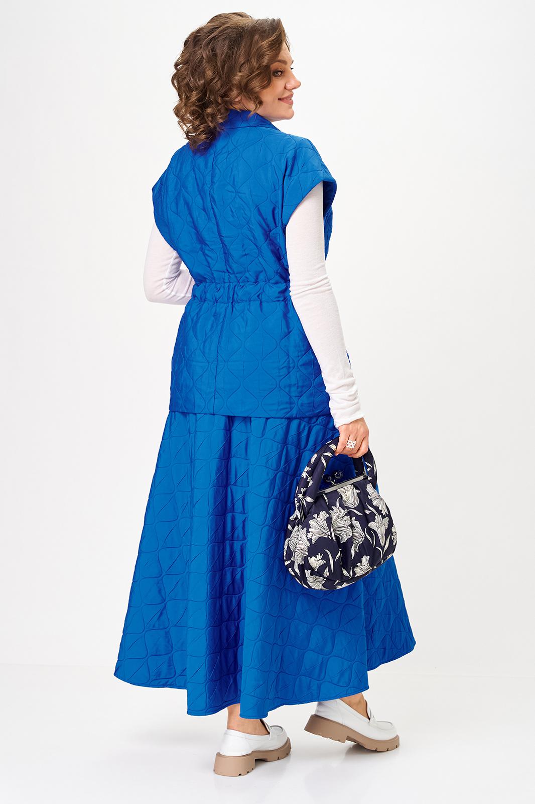 Бренд белорусской женской одежды больших размеров Anastasia представляет костюм двойку. Костюм женский 2-х предметный (жилет, юбка) из стеганной ткани станет отличным дополнением к Вашему гардеробу. Подойдет для повседневной носки (работа, офис, прогулки). Достаточно дополнить его соответствующими предметами из вашего гардероба: блузка, майка, водолазка, гольф, свитер, лонгслив, свитшот. Жилет прямого силуэта, со спущенным плечом. Может быть самостоятельным элементом гордерба. Застежка двухбортная, воротник английского типа. По полочке идет грудовая выточка из бокового шва, по спинке средний шов, по талии кулиска-резинка, по бокам -карманы. Юбка-макси, полусолнце. Пояс отрезной на резинке. По бокам - карманы. Благодаря своему крою и фасону костюм подчеркивает женственные формы и скрывает то, что должно быть незаметным. Это повседневный вариант на каждый день для занятий в школе или для офиса, на работу или на прогулку. Наденьте его на деловую встречу, официальное мероприятие, школьное торжество. Модель подойдёт для образа в университет или колледж. Длина по спинке (48-52)-70см, (54-58)-71 см. Длина юбки (48-58) - 93см.