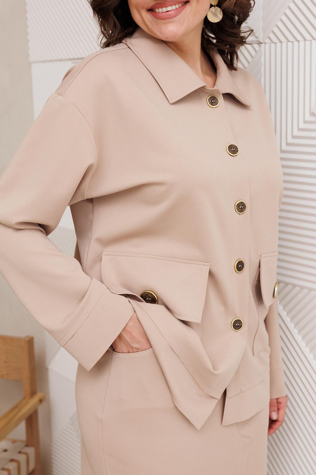 Представляем вашему вниманию женский костюм с юбкой макси. Костюм двойка станет для Вас незаменимым луком на каждый день. Удобная посадка не сковывает движения. Костюм женский 2-х предмеиный ( жакет, юбка) из трикотажной ткани . Жакет прямого силуэта со спущенным плечом. Застежка - планка на петли и пуговицы.Воротник стояче-отложной. По полочке идут накладные карманы. По низу куртки и рукава идет подрез из основной ткани. Юбка зауженная к низу. По переду юбки идет застежка молния и фигурный подрез, переходящий в разрез. По бокам - карманы. По спинке- отрезная кокетка и средний шов. Пояс со шлевками. По низу жакета и юбки идет необработанный срез. Длина жакета (по спинке):(50-54)- 67см, (56-60)-69 см. Длина рукава: (50-54)-56см, (56-60)-58см. Длина юбки: (50-60):-94см.