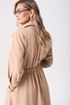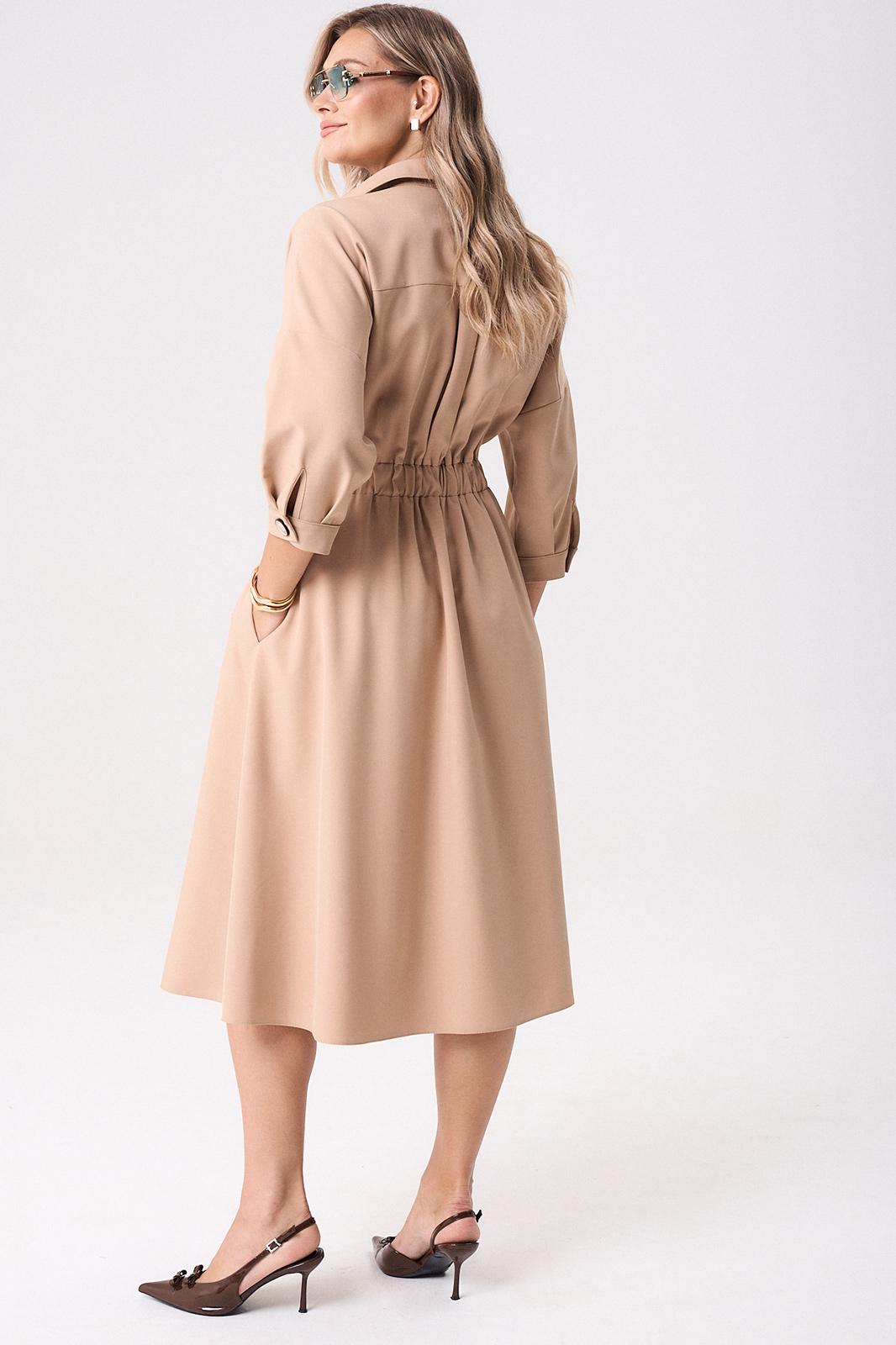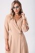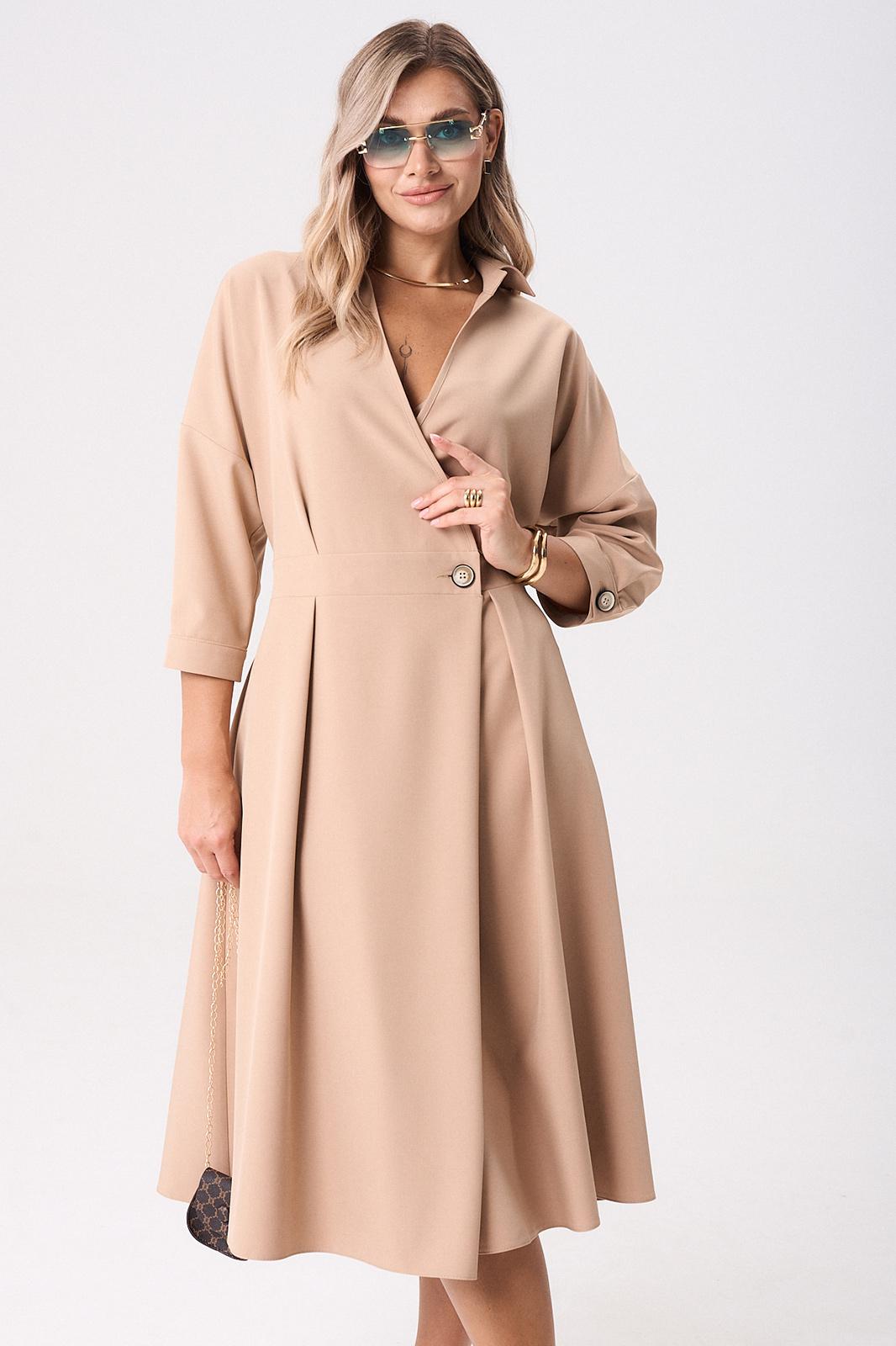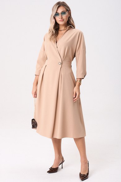 Элегантное женское палтье из костюмной ткани необычного кроя станет изюминкой вашего гардероба. Платье полуприлегающего силуэта, отрезное по линии талии со спущенным плечом. Рукав 3/4 длиный на отрезной манжете. По полочке идут защипы-складки в верхней и нижней частях, запах - на петли и пуговицы по подрезу. По нижней части платья запах идет в виде складки. По спинке кокетка со складкой, по подрезу вставлена резинка. Юбка-полусолнце с односторонними складками по полочке, по бокам карманы. По горловине воротник на отрезной стойке. Платье будет идеально смотреться с туфлями, ботинкаи и сапогами. Длина по спинке: 117см. Длина рукава с манжето 29см.