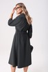 Элегантное женское палтье из костюмной ткани необычного кроя станет изюминкой вашего гардероба. Платье полуприлегающего силуэта, отрезное по линии талии со спущенным плечом. Рукав 3/4 длиный на отрезной манжете. По полочке идут защипы-складки в верхней и нижней частях, запах - на петли и пуговицы по подрезу. По нижней части платья запах идет в виде складки. По спинке кокетка со складкой, по подрезу вставлена резинка. Юбка-полусолнце с односторонними складками по полочке, по бокам карманы. По горловине воротник на отрезной стойке. Платье будет идеально смотреться с туфлями, ботинкаи и сапогами. Длина по спинке: 117см. Длина рукава с манжето 29см.