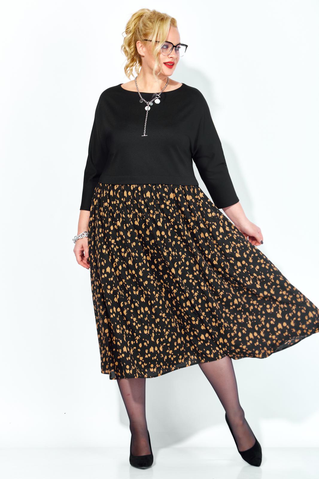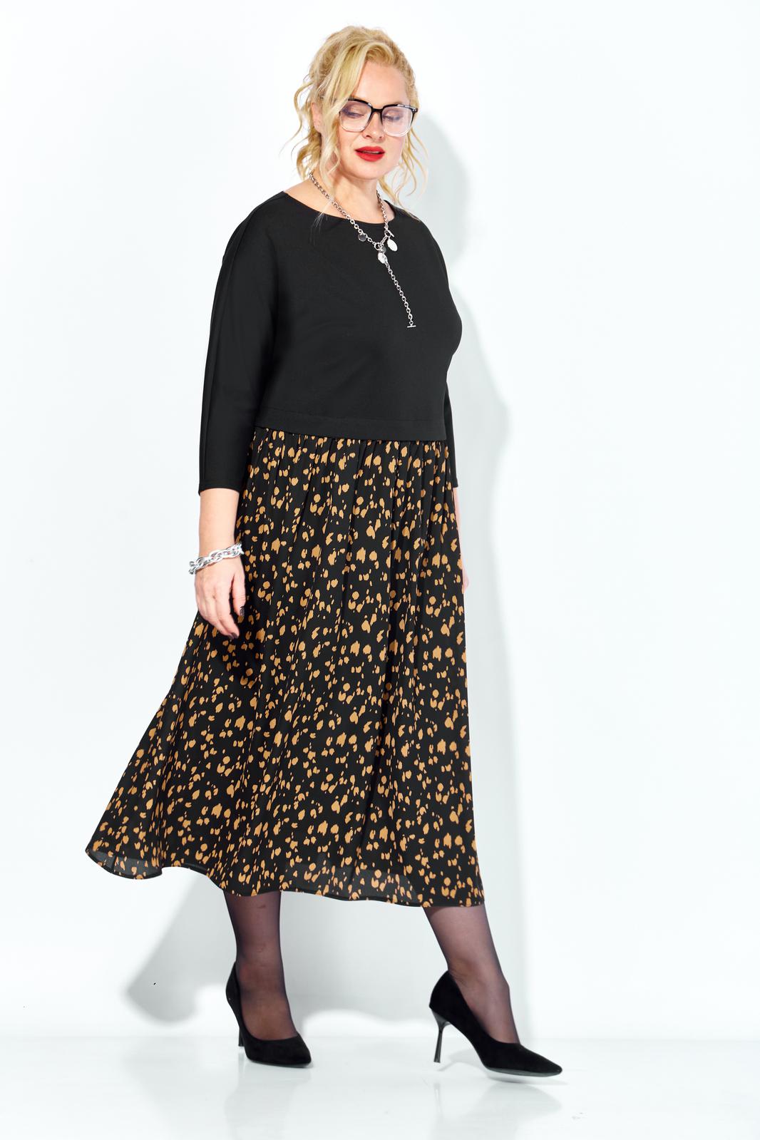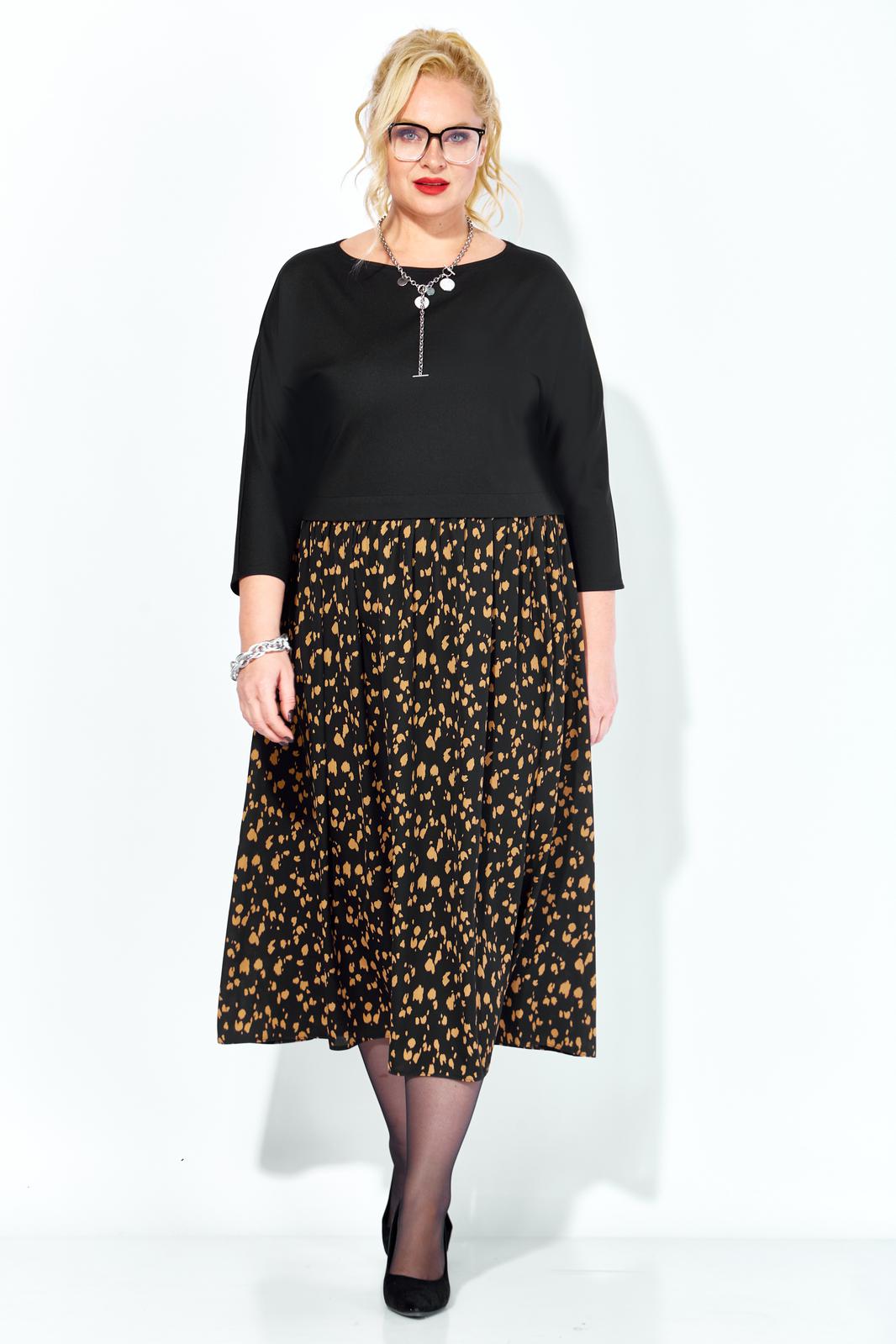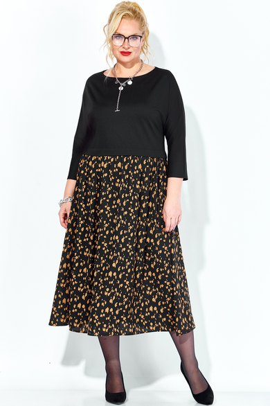 Создайте свой неповторимый образ с этим оригинальным женским платьем от Anastasia! Оно имеет удивительно комфортный крой, который скроет все недостатки фигуры. Идеальный вариант как для повседневной носки, так и для праздничного выхода, достаточно дополнить его соответствущими аксессуарами. Платье женское из двух видов ткани. Платье отрезное по линии талии со сборкой. Рукав 3/4 длины , летучая мышь. По спинке - средний шов. Благодаря свободному крою платье отлично сядет на любую фигуру. Длина платья (по спинке):(48-52) 115см., (54-58)-120 см. Длина рукава от головины: (48-58)-55см.