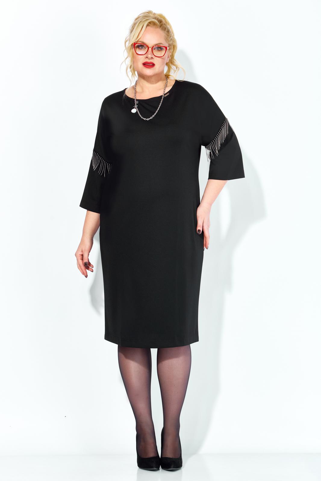 Черное платье миди — не просто одежда, это заявление о вашем стиле и вкусе. Элегантное праздничное платье прямного силуэта из трикотажного полотна. Ткань не мнется. Благодаря своему крою подойдёт для разных типов фигуры. Оно подчеркнёт вашу индивидуальность и станет отличным дополнением к вашему гардеробу. В нём вы будете чувствовать себя уверенно и комфортно, зная, что выглядите на все сто. Выбирая его, вы выбираете качество, комфорт и стиль. Классическое черное платье прямого силуэта, со спущенным плечом. Такое платье незаменимая вещь в любом гардеробе. В качестве декора металлизированная бахрома на рукавах, брендированная нашивака на горловине и спинке. По спинке идет средний шов. Такое платье незаменимая вещь в любом гардеробе. Рекомендуется носить на черное белье. Длина платья по спинке (48-52) - 100см, (54-58) - 104 см. Длина рукава: (48-58) - 26 см.