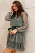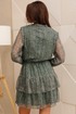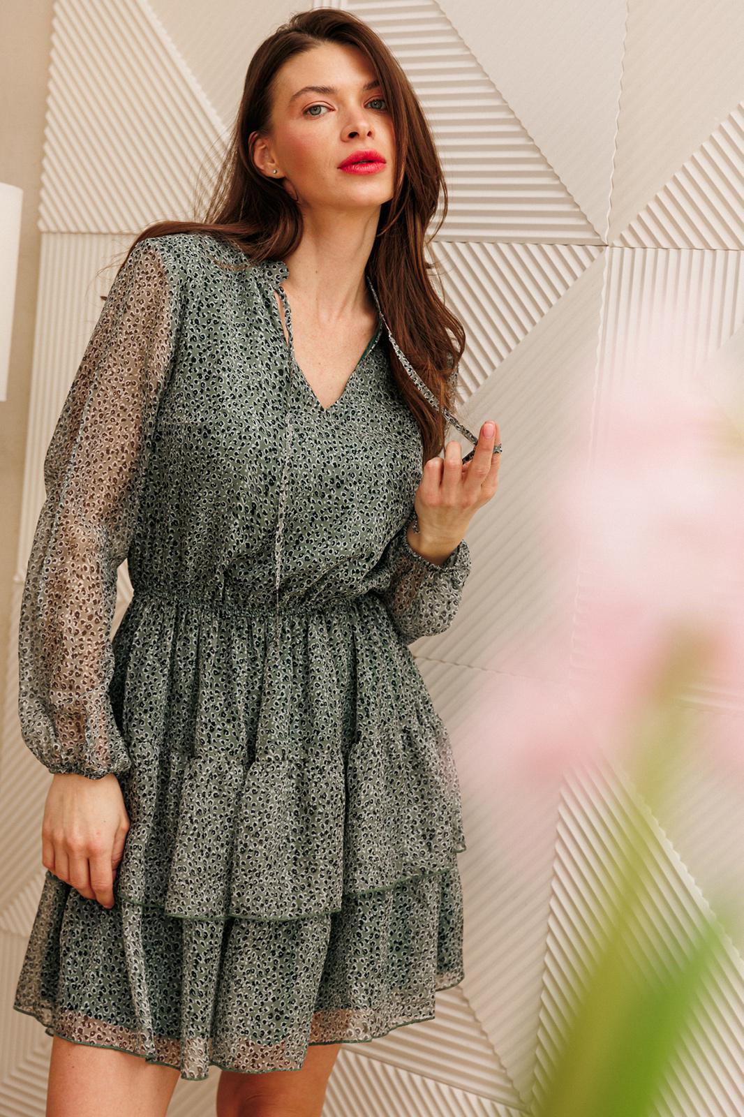 Создайте свой неповторимый образ с этим женским платьем от Anastasia! Платье женское из шифоновой ткани на подкладке, отрезное по линии талии, на резинке. Подойдет как для ежедневной носки, так и для праздничного выхода. Достаточно обыграть его подходящими аксессуарами и обувью. Из бокового шва идут грудовые выточки,спинка со средним швом. Воротник-стойка, с завязкой. Юбка с двумя воланами, рукав вточной, низ на резинке. Длина спинки: (44-54)-90 см. Длина рукава: (44-54)-59см.