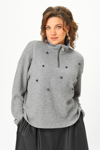Вязаный женский джемпер с воротником-стойкой на молнии - это идеальный выбор для создания стильного и уютного образа в прохладное время года. Изготовленный из мягкого трикотажа, в состав которого входит смесовая вискоза, этот джемпер приятно облегает тело и обеспечивает максимальный комфорт. Свободный прямой крой со спущенной линией плеча создает расслабленный силуэт, который идеально подходит для удобной носки и позволяет свободно двигаться. Длинные рукава добавляют изделию изысканности и стиля, а также защищают от холода. Воротник-стойка на молнии не только добавляет оригинальности, но и позволяет регулировать тепло, что делает этот джемпер универсальным элементом гардероба, а оригинальный декор по переду придаёт образу праздничный вид. Он отлично сочетается как с брюками, так и с юбками, позволяя создавать разнообразные образы для разных случаев.