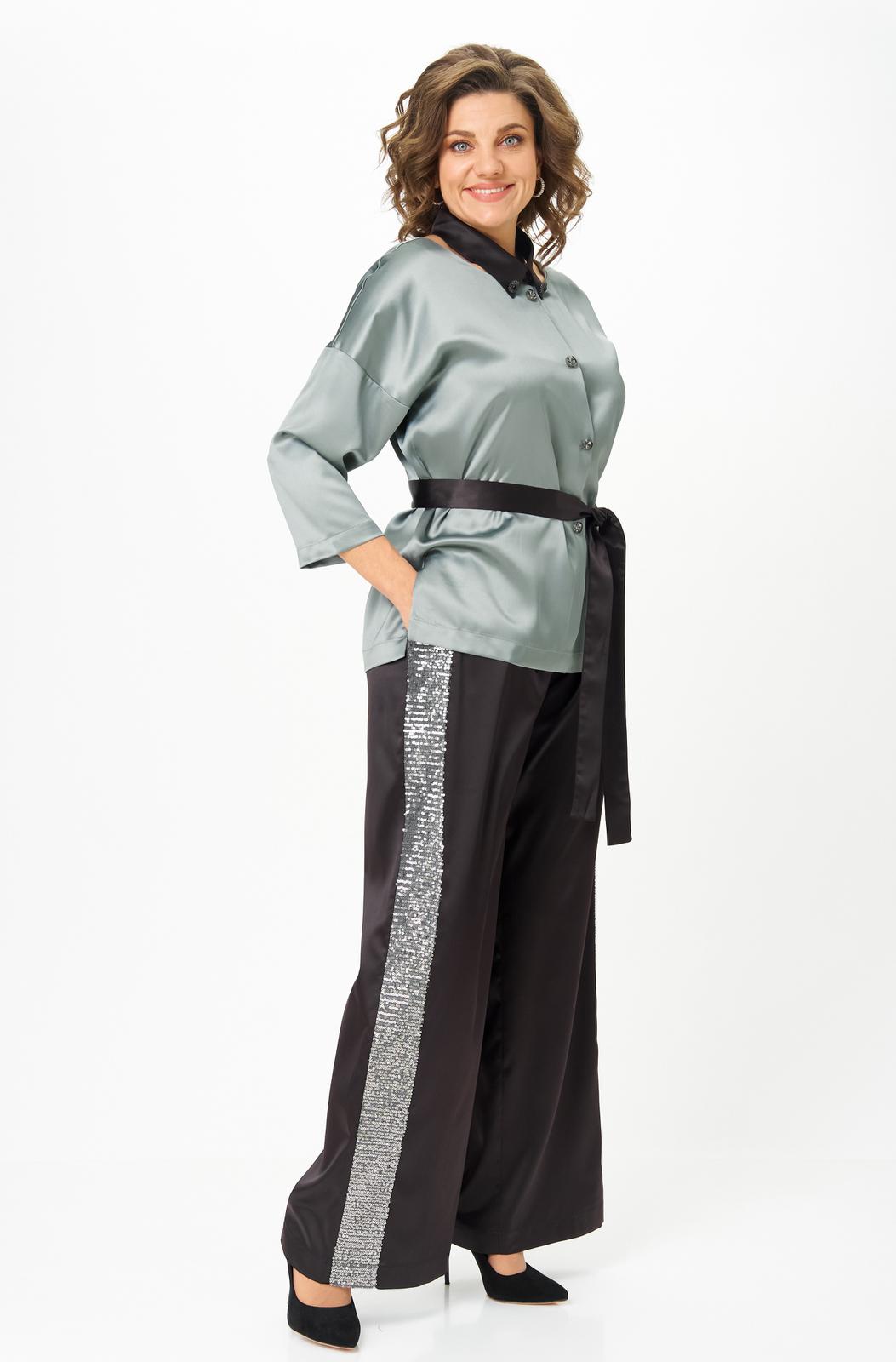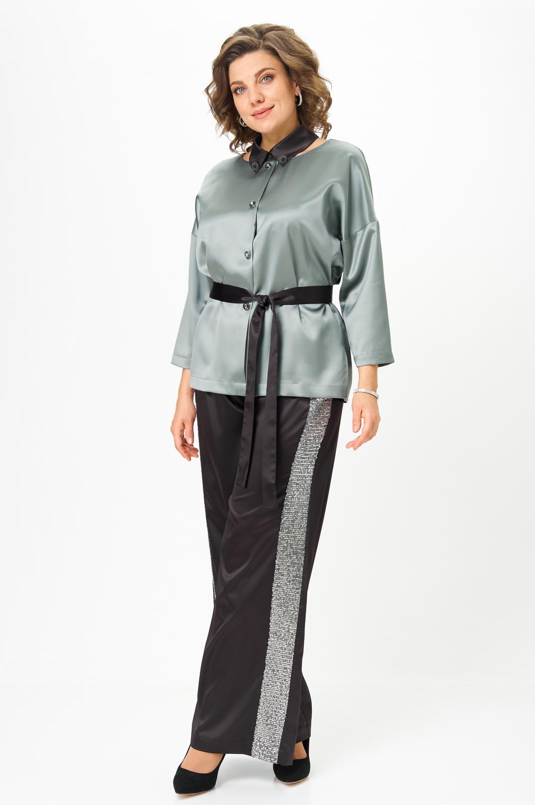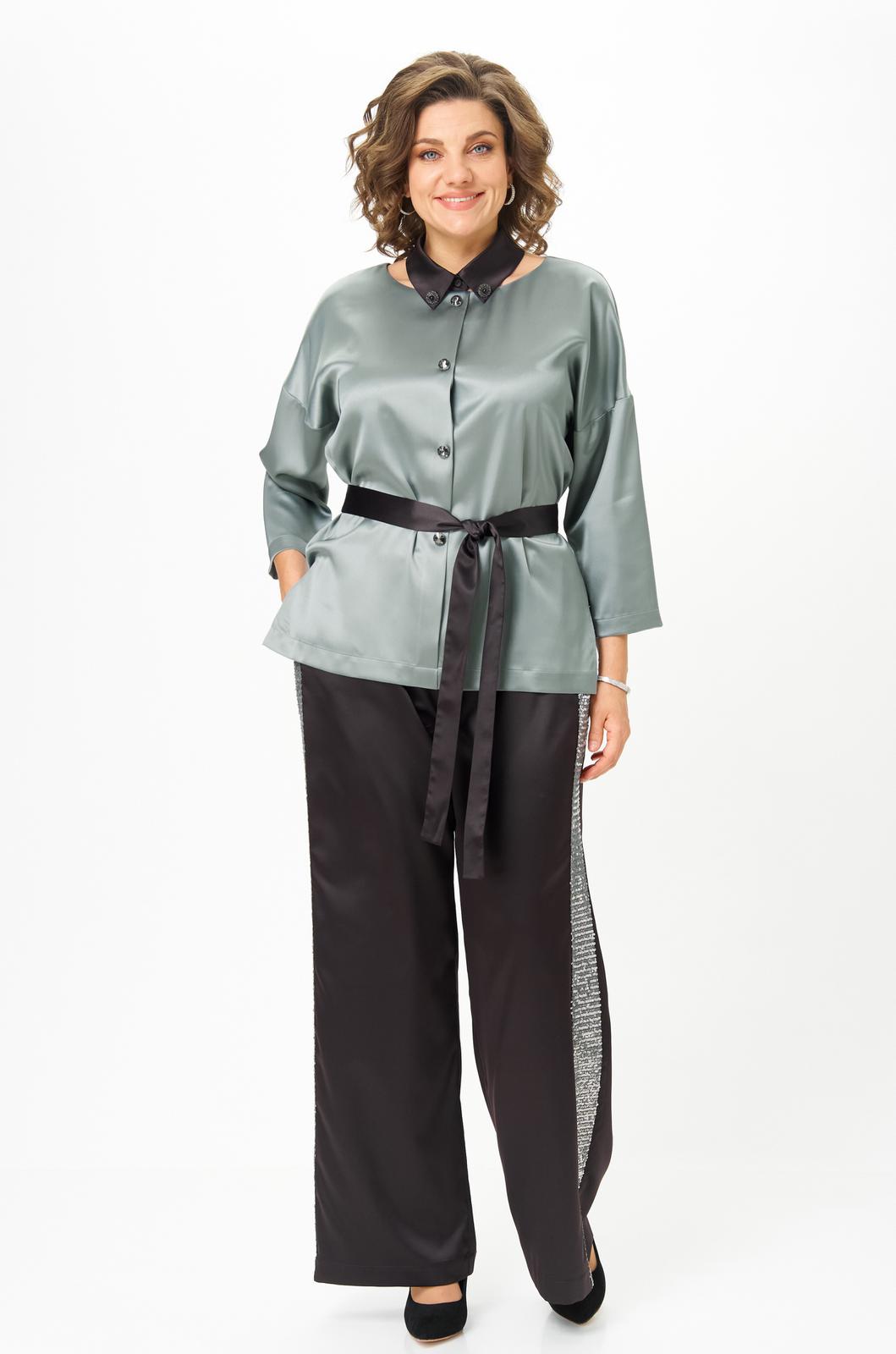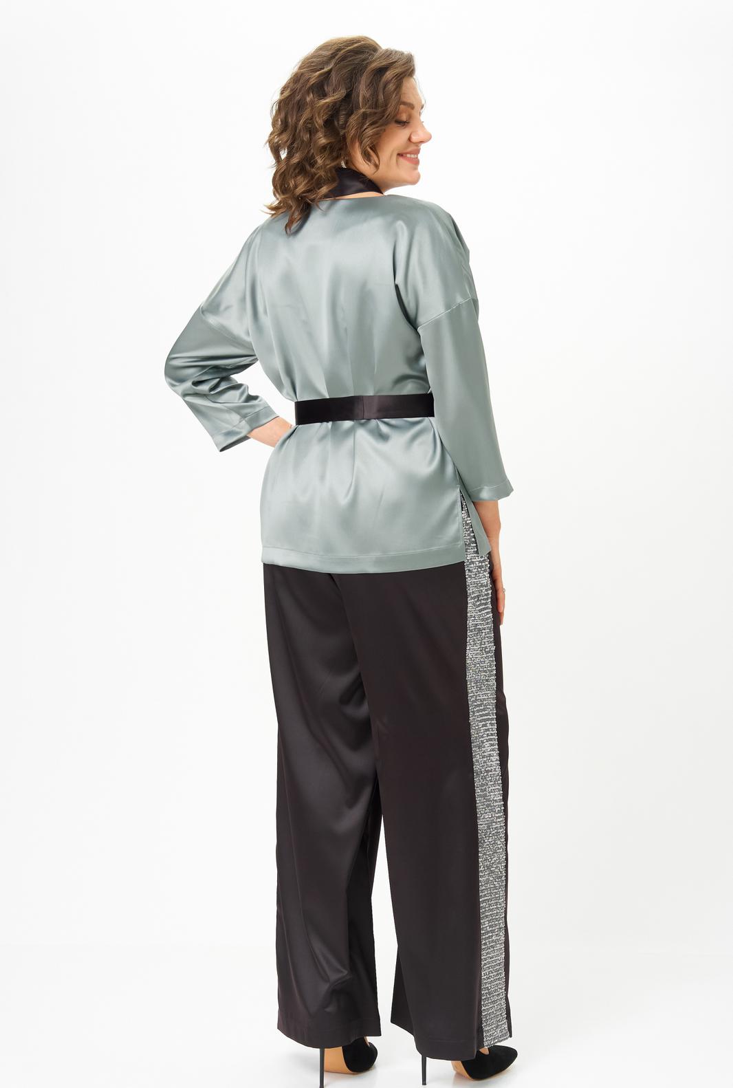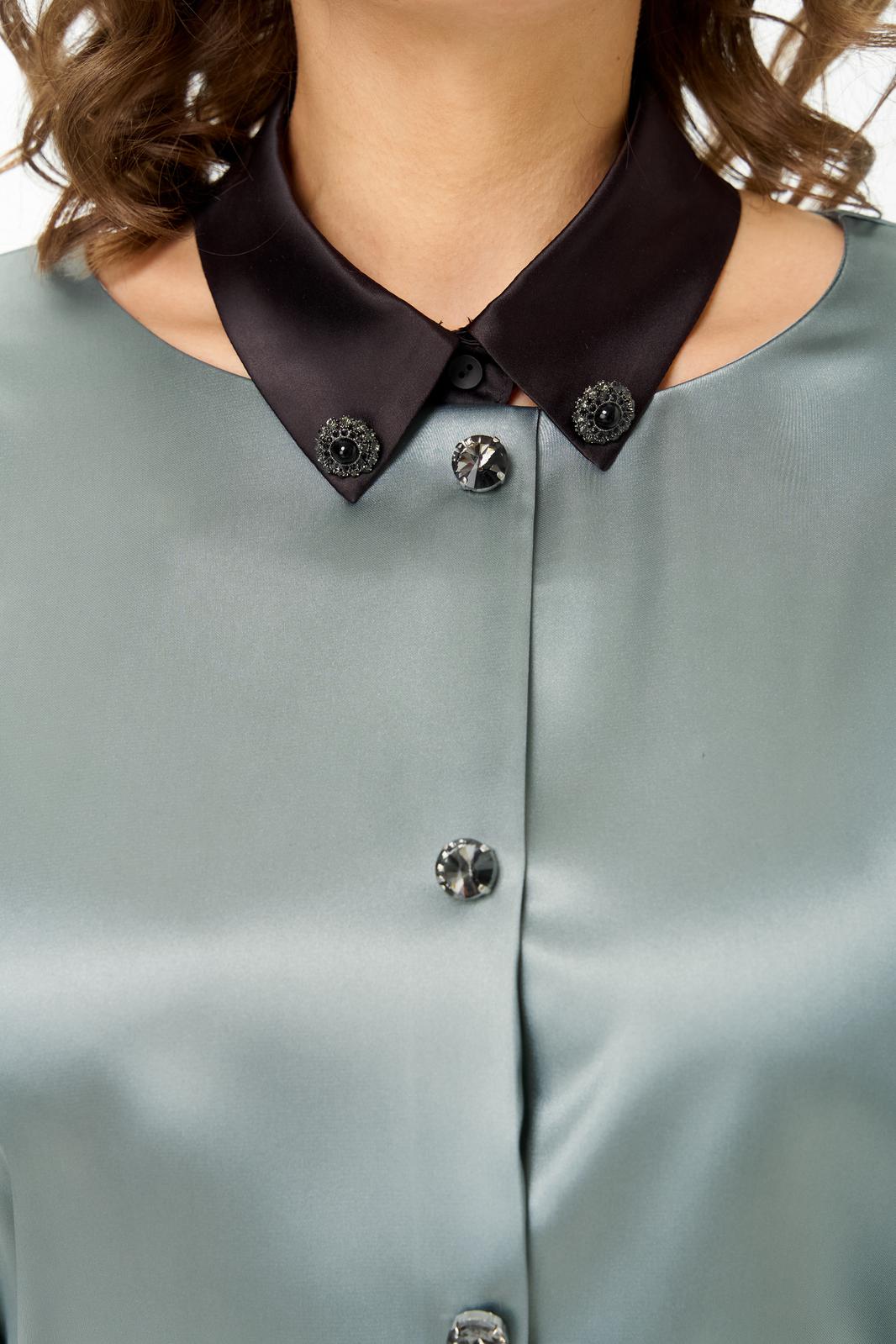 Стильная атласная блузка со съёмным воротником и дизайнерскими пуговицами, способна сделать ваш гардероб еще более модным и уникальным. Модель с рукавом ¾, свободным прямым кроем и съёмным поясом подойдет для любой фигуры, подчеркнёт её достоинства и скроет недостатки.