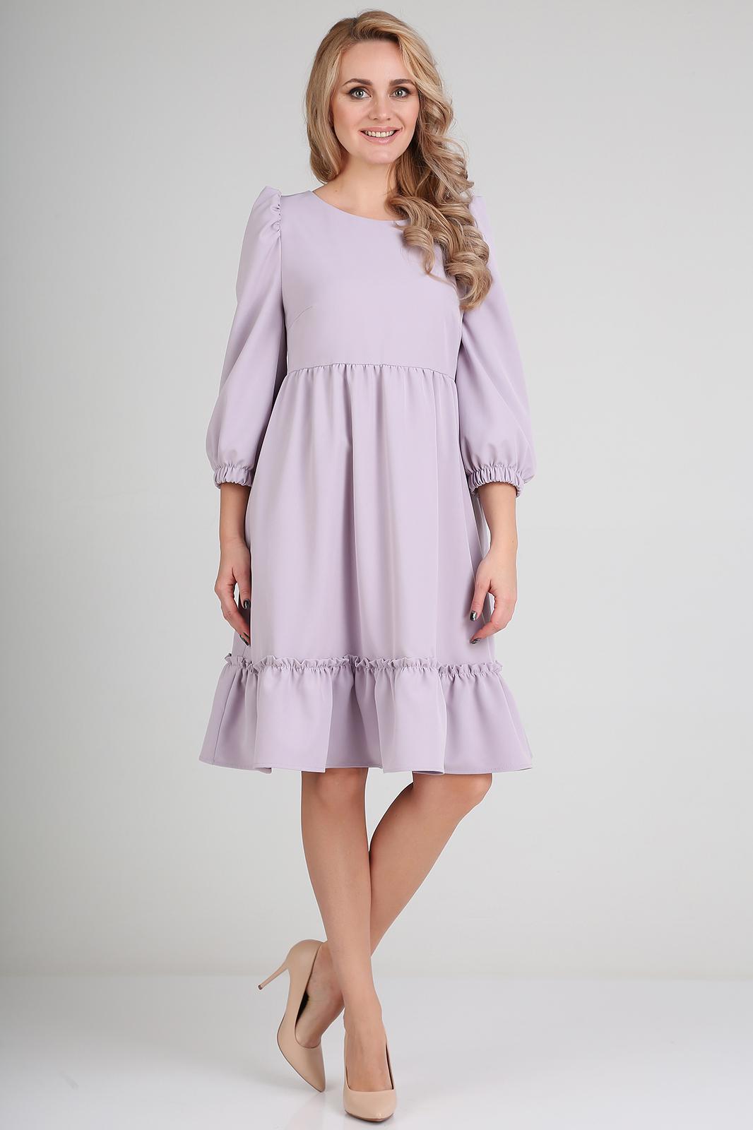 Платье женское. Модное платье силуэта - бэбидолл. Такой силуэт достигается подрезом по лифу выше линии талии, и присборенной юбкой. Выполнено из костюмной ткани. Рукав втачной, со сборкой по окату. Длина рукава 3/4, внизу собран на резинке. Внизу платья широкая рюша. Застежка на потайную молнию в среднем шве спинки. Платье с карманами в боковых швах.