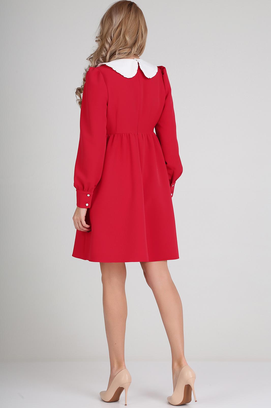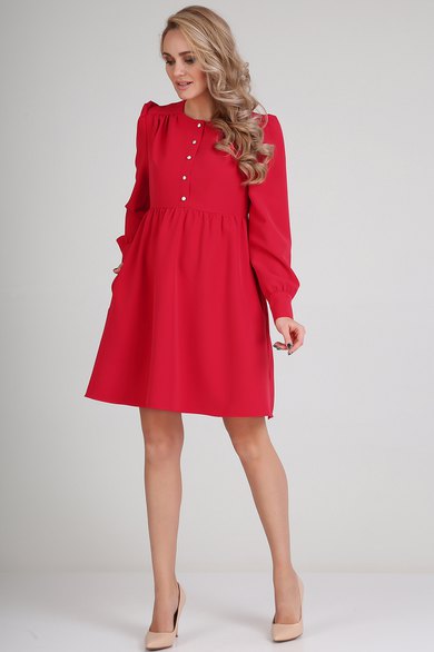 Платье женское. Милое платье свободного силуэта - бэбидолл. Такой силуэт достигается подрезом по лифу выше линии талии, и присборенной юбкой. Выполнено из костюмной ткани. Спереди отрезные наклонные кокетки. От кокеток сборка. Застежка на цельнокроеную планку с петлями и пуговицами. Горловина округлая, на обтачке. Рукав втачной, широкий, со сборкой по окату. Длинный, присборенный на манжет. Манжет широкий, на две пуговицы. Платье с карманами в боковых швах.