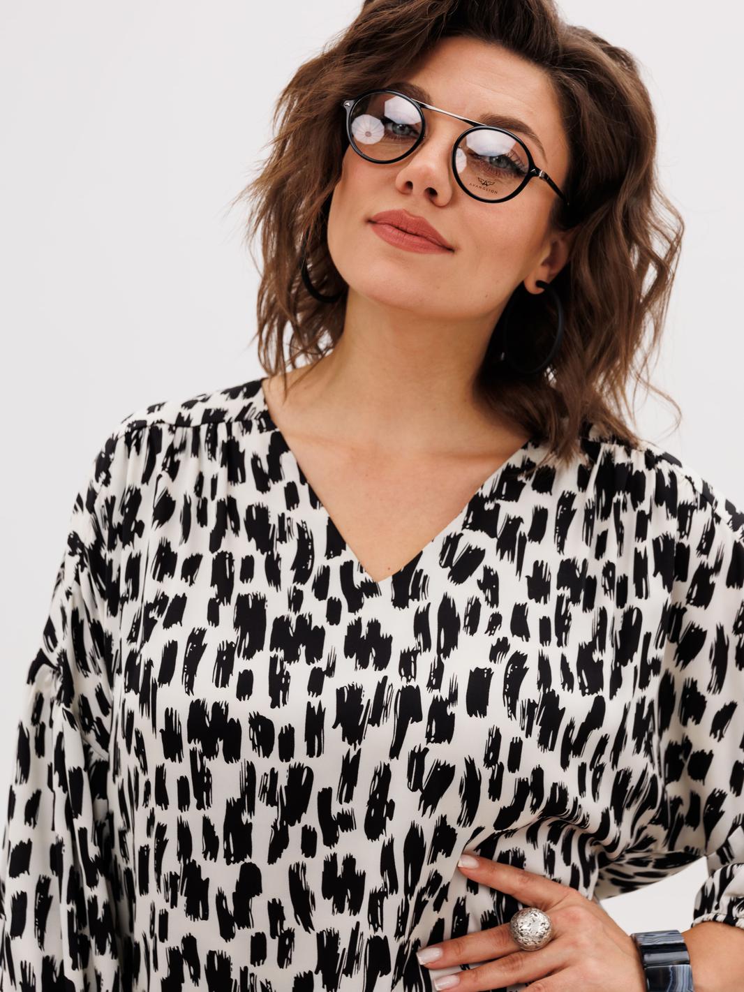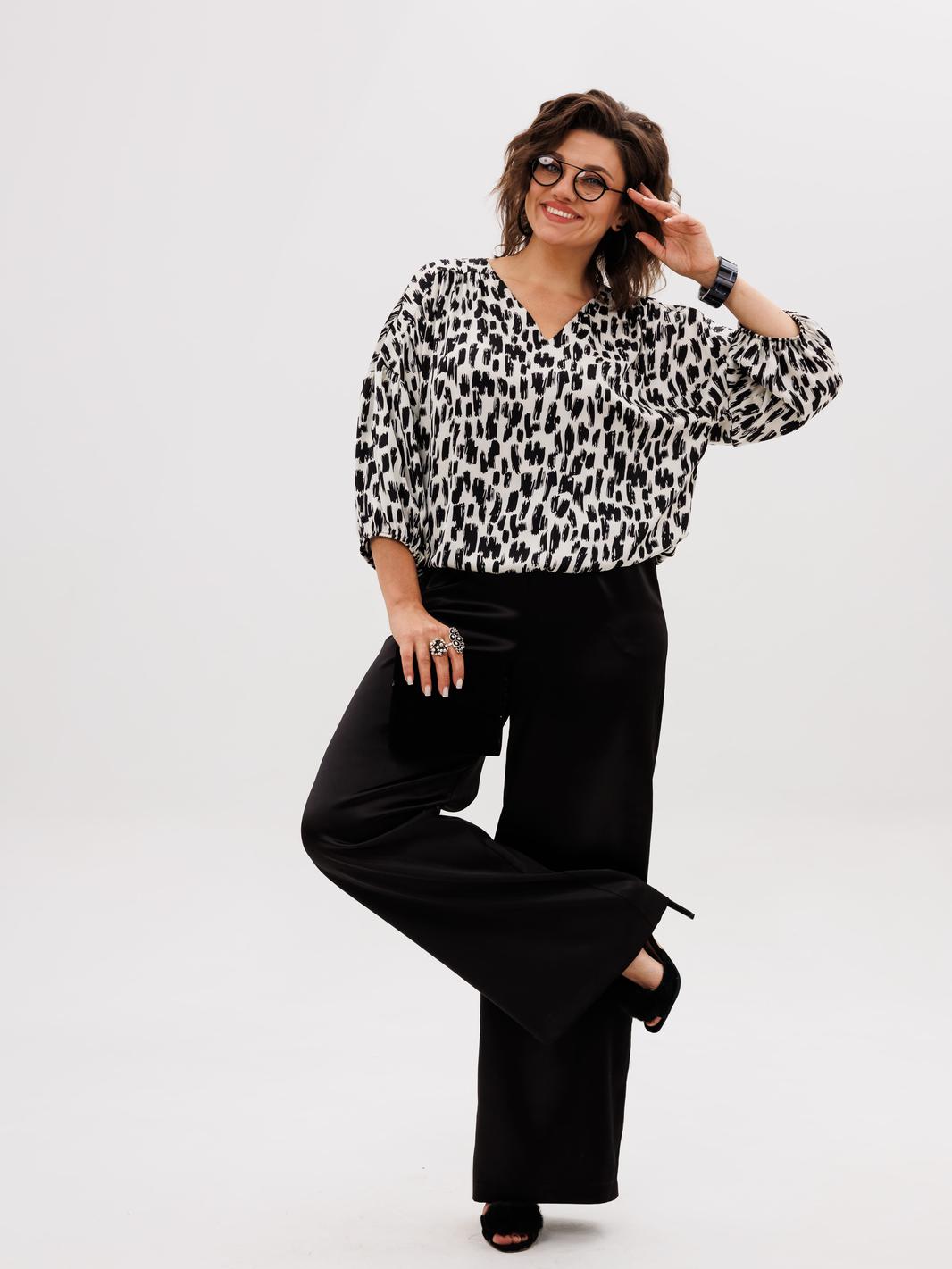 Но главная тайна этой модели скрыта в ее сердце — эластичная резинка, проходящая по всему низу блузы. Эта деталь полностью меняет правила игры. Теперь вы сами становитесь творцом своего образа: укоротите блузу для дерзкого современного вида или отпустите ее для струящегося, романтичного силуэта. Она послушно следует за вашим желанием, подстраиваясь под настроение и ситуацию.