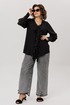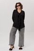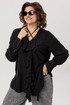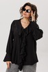 Глубокий V-образный вырез, украшенный воланами, подчеркивает изысканно-романтичный характер блузы. Эту историю дополняет игра завязок: их можно распустить для непринуждённой элегантности или завязать на шее, чтобы подчеркнуть трогательную женственность.