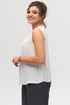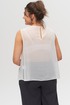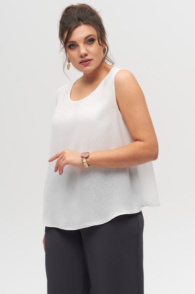 Топ свободного силуэта, немного расширенного к низу, перед двойной, не просвечивает, по спинке выполнен разрез-щель с застёжкой на навесную петлю и красивую пуговицу.