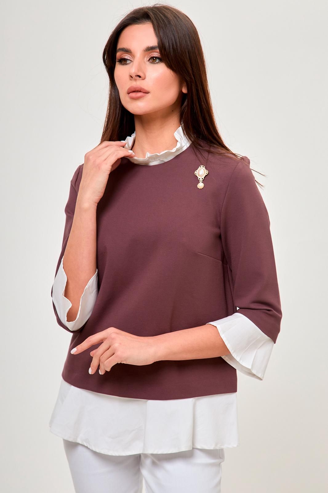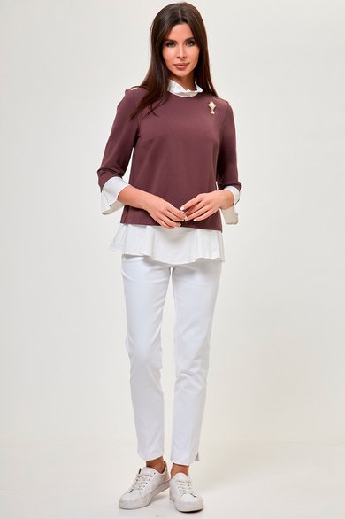 Блузка-трансформер полуприлегающего силуэта со съемными белыми манжетами-накладками.