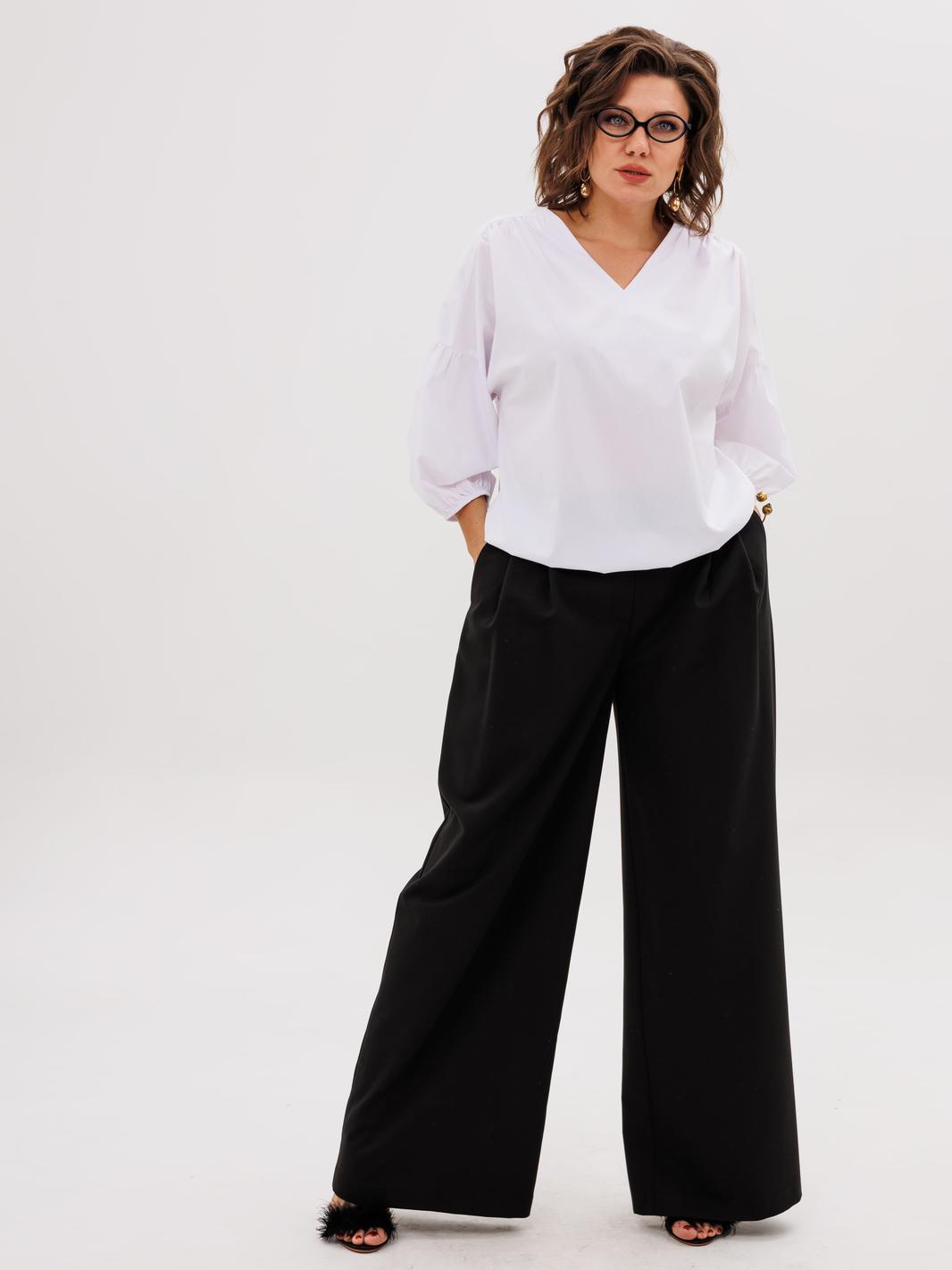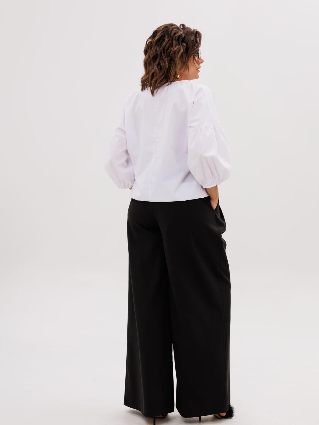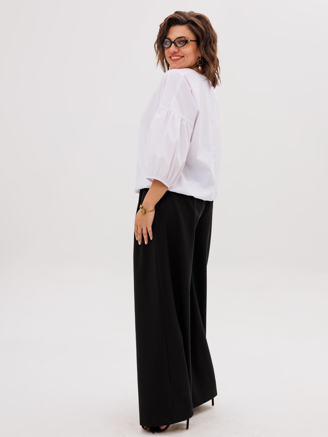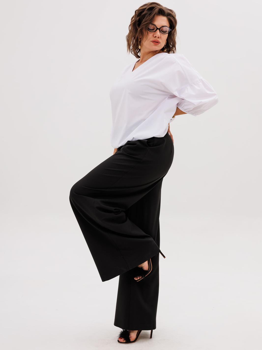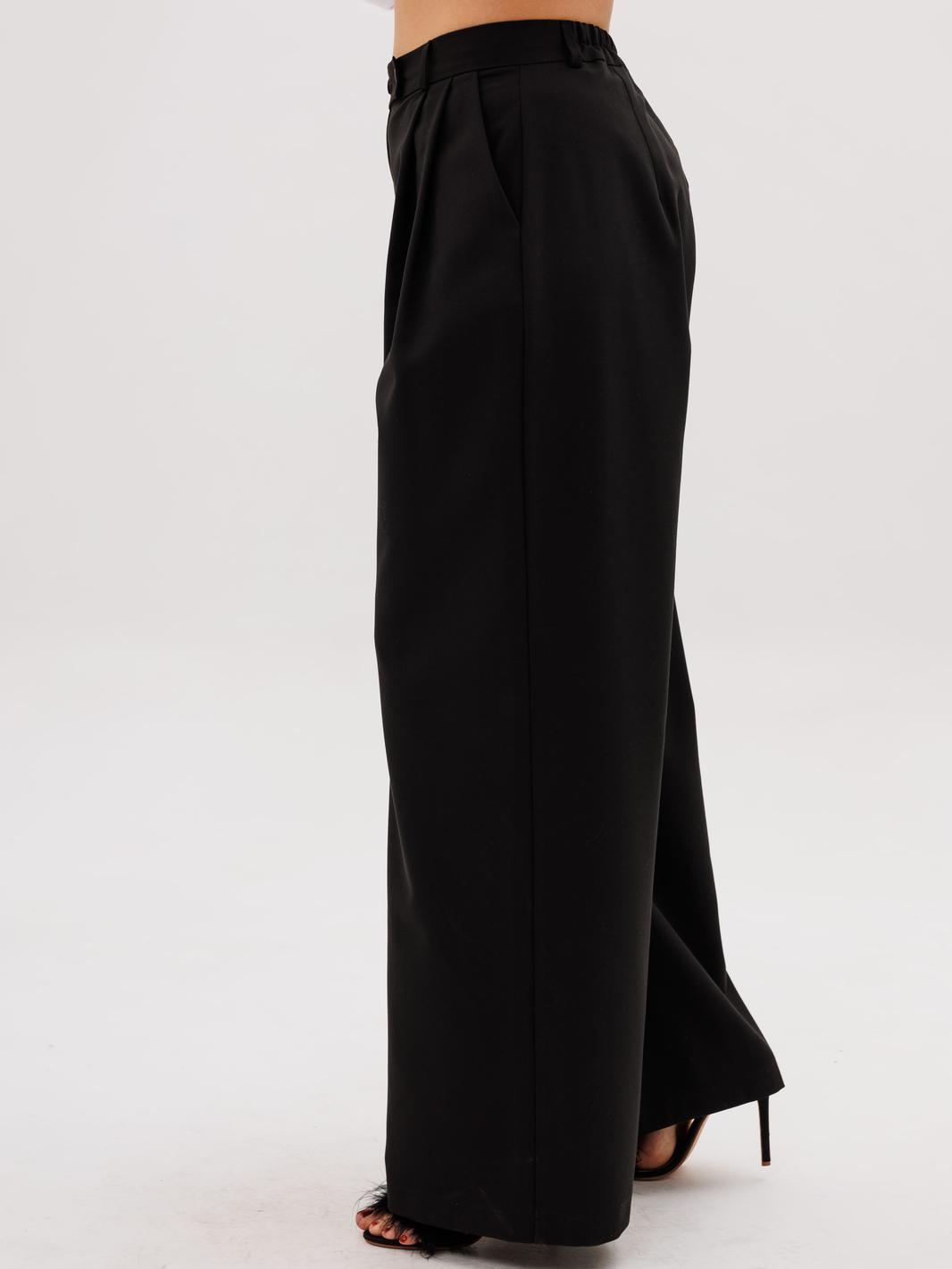 Элегантные брюки-палаццо с современным силуэтом. Модель отличается безупречным кроем с высокой посадкой, который подчеркивает талию и создает выразительный удлиненный контур. Широкие, ниспадающие мягкими складками штанины дарят образу воздушность и непринужденную пластику.