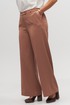Брюки прямые, удлинённые, с высокой посадкой. По переду талиевые вытачки и боковые карманы. Застежка-молния спереди. По спинке талиевые вытачки. Пояс по спинке на резинке, для лучшего прилегания, спереди застежка на петли пуговицы.