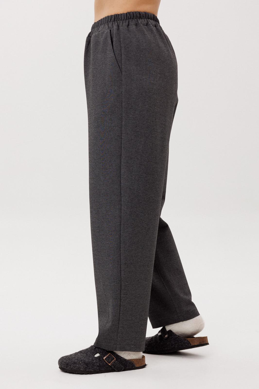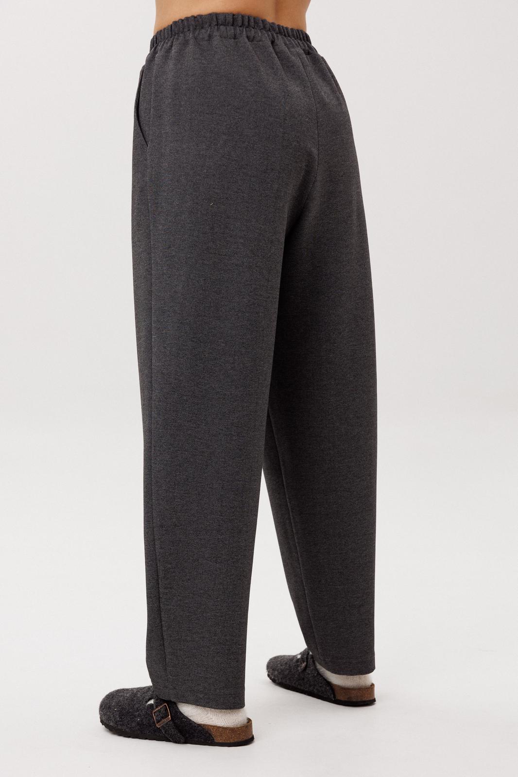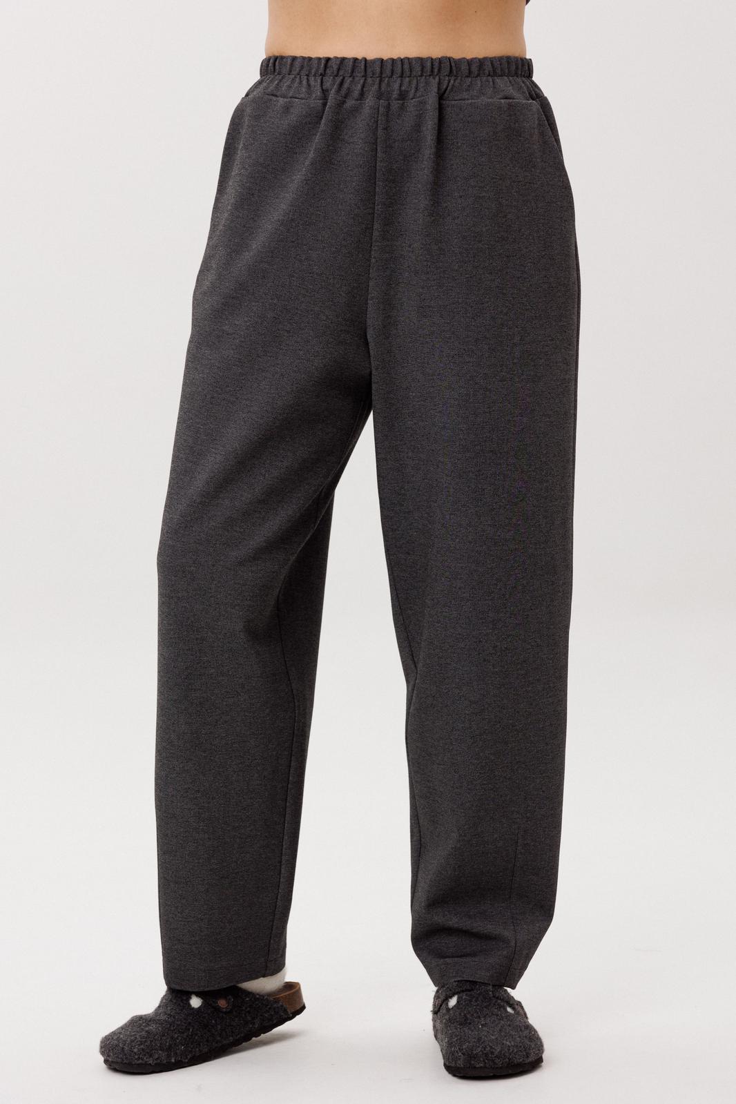 Идея повседневной элегантности обретает здесь свою совершенную форму — мягкий трикотаж, струящийся свободным кроем, нежно обволакивает фигуру, даря ей полную раскрепощенность. Высокая посадка становится основой безупречного силуэта, плавно ведущего взгляд от тонко подчеркнутой талии к изящному заужению книзу, созданному изящной вытачкой для идеальной посадки по ноге. Притачной пояс завершает эту гармонию линий, обеспечивая комфорт, который не приходится проверять, а боковые карманы добавляют практичной лаконичности.