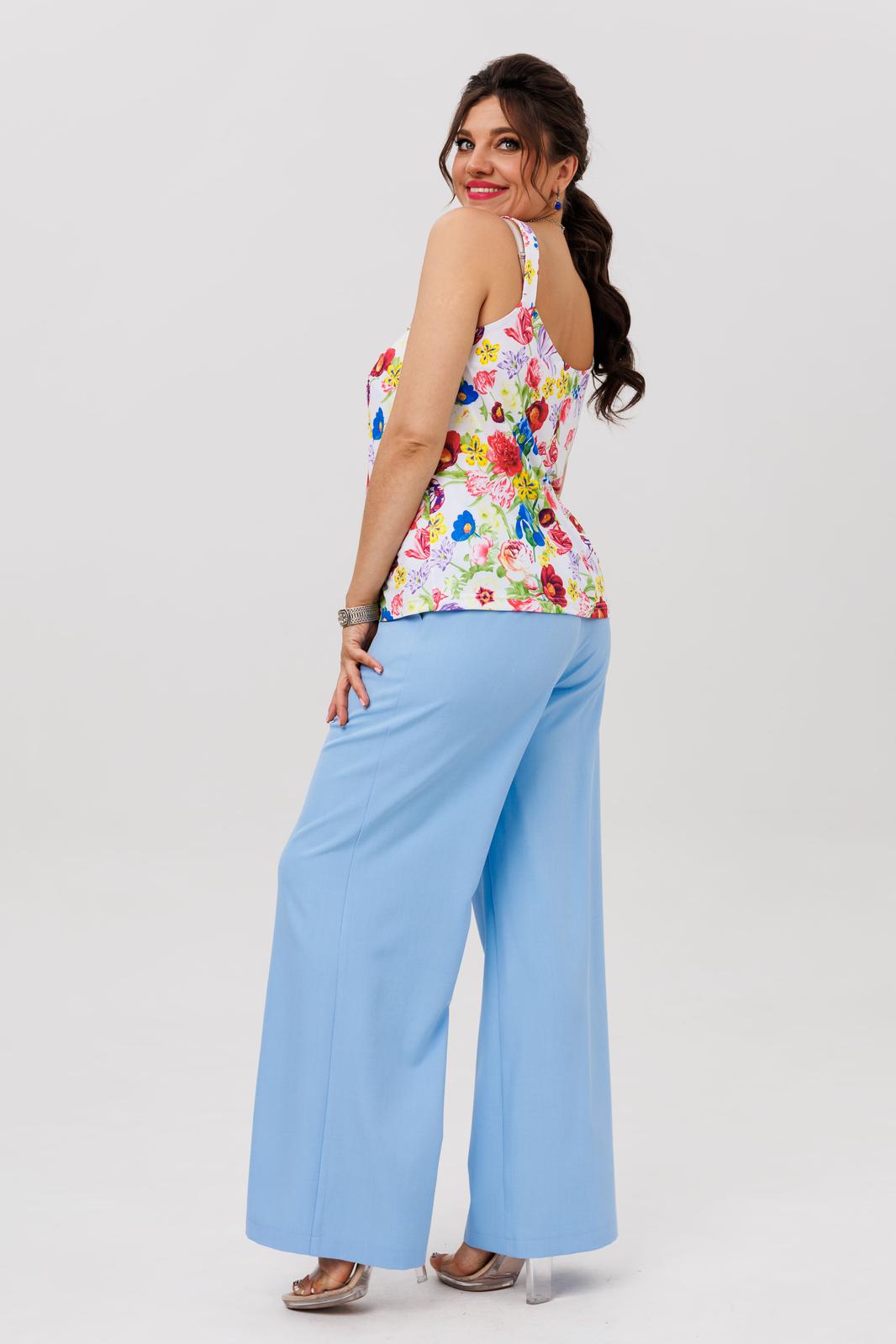 Эти брюки в нежном цвете «голубая гортензия» станут вашим незаменимым выбором как для повседневных образов, так и для особых случаев. Они могут быть стильно сочетаемыми с топами, блузами и обувью разных стилей, подчеркивая вашу индивидуальность и женственность.