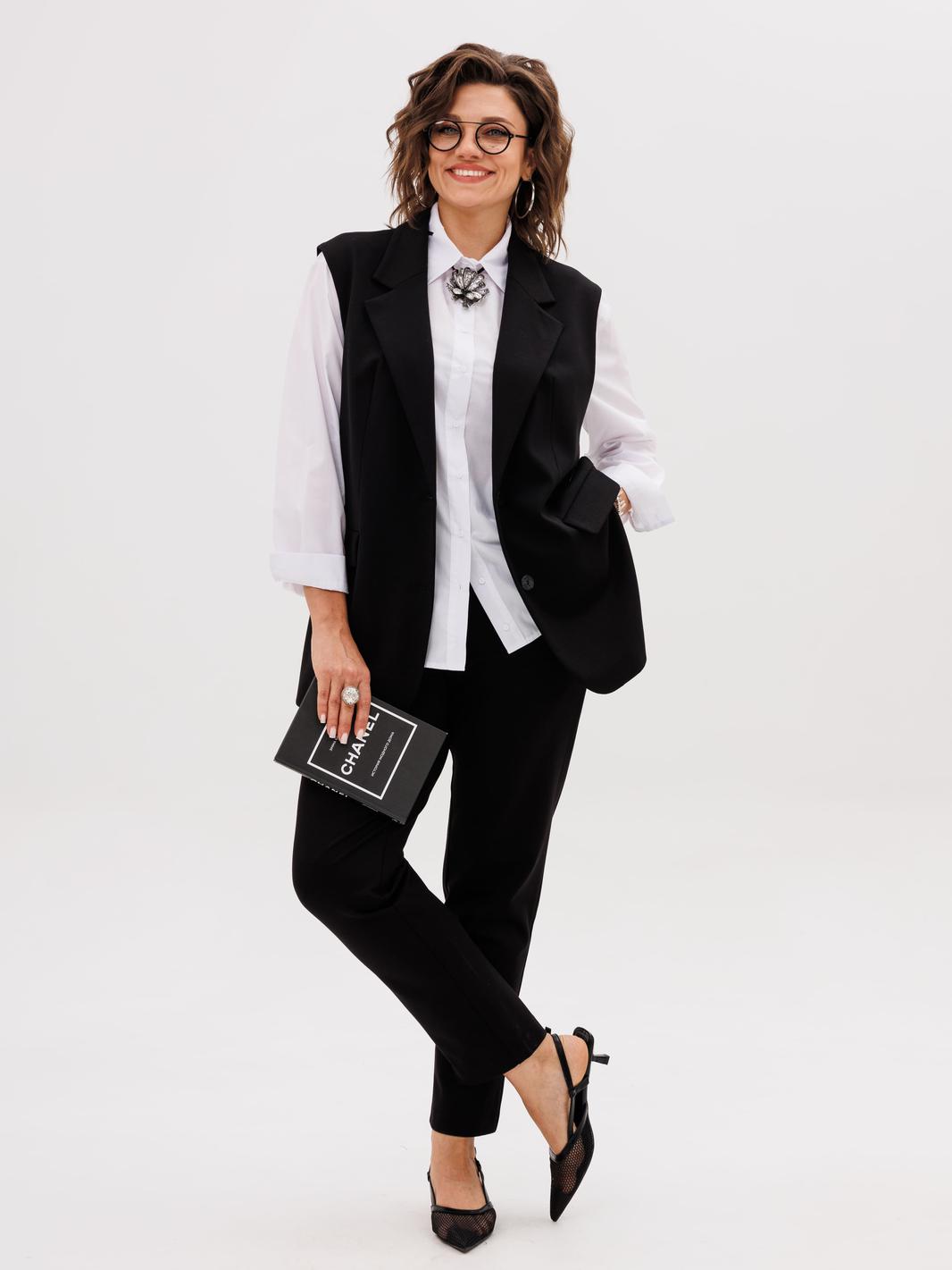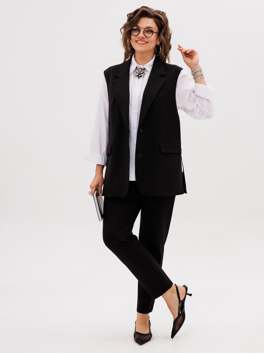 На модели жилет с кольцами 1675, рубашка 1503, жакет Эко кожа 1470.