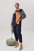Эти брюки заужены к низу, что позволяет носить их с любым видом обуви. Также вы можете носить брюки костюмом — с рубашкой 1746 от Анелли в цвете «глубина ночи», как представлено на модели.