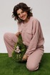 Брюки продолжают философию комфорта, предлагая прямую посадку на эластичном поясе, который мягко сидит по фигуре, не стесняя движений. Лаконичный дизайн дополнен практичными боковыми карманами. Подлинной изюминкой всего комплекта становятся намеренно открытые срезы, привносящие в образ ноту дерзкого шика. На модели образ с жакетом 1658.1 от Анелли.