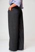 Брюки женские палаццо длинные, с завышенной талией. По переду защипы, боковые карманы и застежка молния. Пояс притачной, застежка на петли пуговицы по переду.