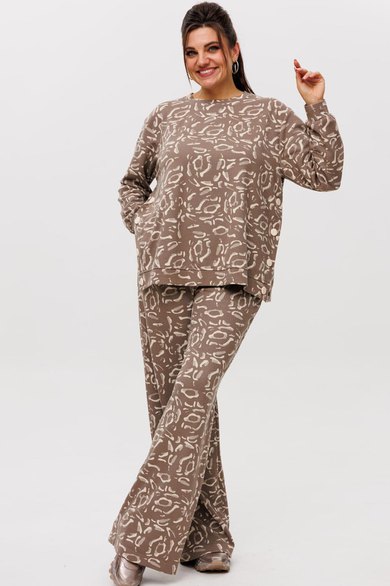 Трикотажный костюм от Анелли с анималистичным, ярким принтом – это идеальное сочетание стиля и комфорта для повседневного гардероба. Он включает в себя просторные брюки палаццо на круговой резинке, что обеспечивает удобную посадку и легкость в движении. Благодаря свободному крою и функциональным карманам, брюки смотрятся элегантно и практичны в носке.
