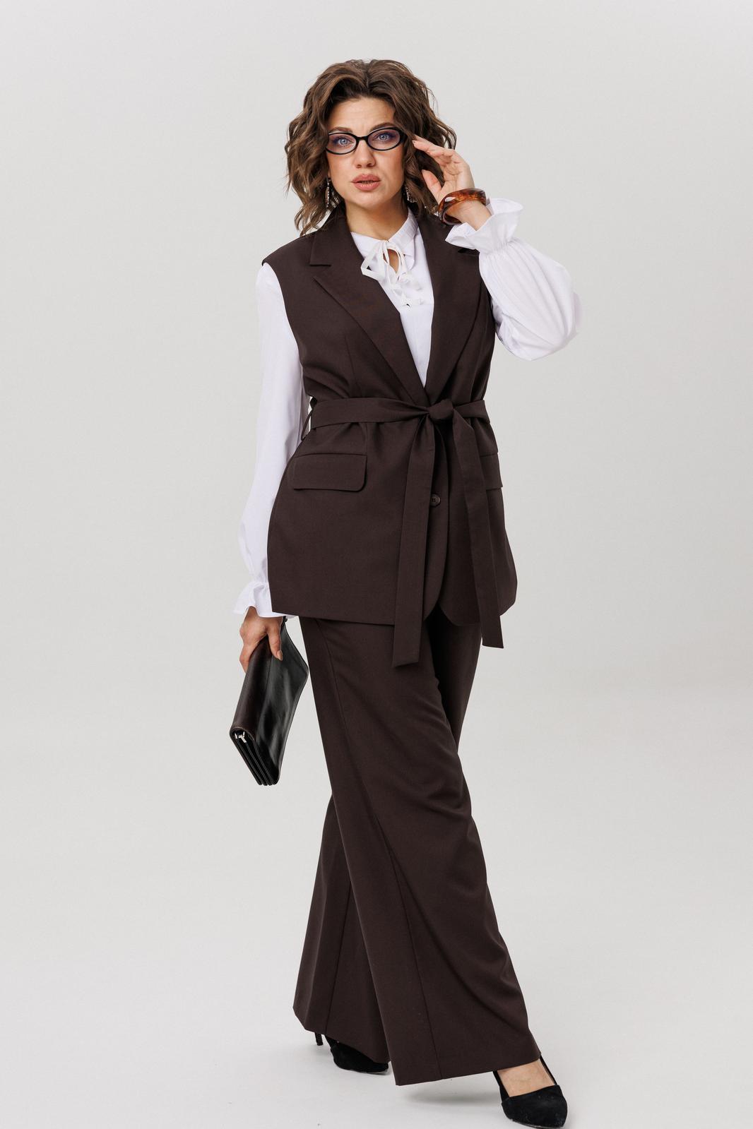 На модели составлен образ с блузой 1281. Также, можно приобрести отдельно жилет 1502 и брюки 1702.