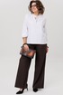 Брюки палаццо с высокой посадкой и резинкой по спинке обеспечивают комфорт и идеальную посадку, мягко облегая фигуру без стеснения движений. Боковые карманы добавляют практичности, сохраняя при этом чистоту линий. Широкие штанины струятся с грациозной легкостью, создавая эффект непринуждённой роскоши.
