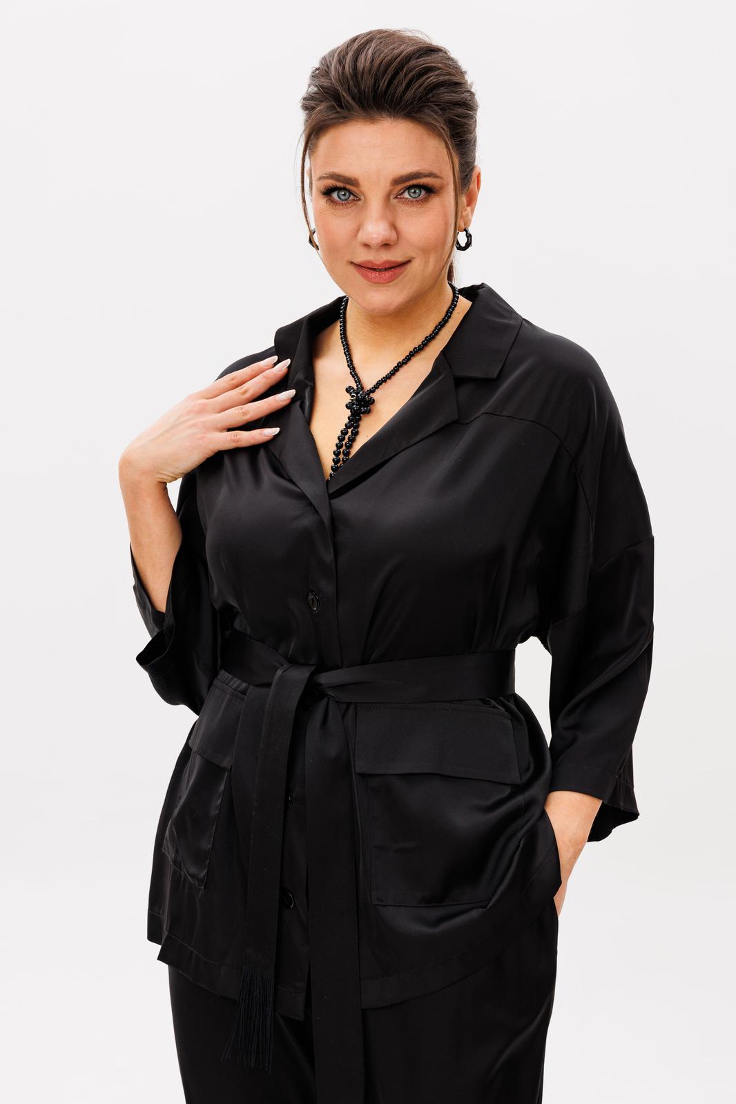 Блуза с изящной линией плеча и расширенным укороченным рукавом создаёт элегантную небрежность. Классический воротник с лацканами и накладные карманы добавляют стильную строгость, а застёжка на пуговицу и декоративный съёмный пояс позволяют играть с силуэтом.