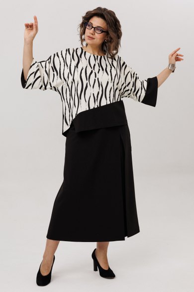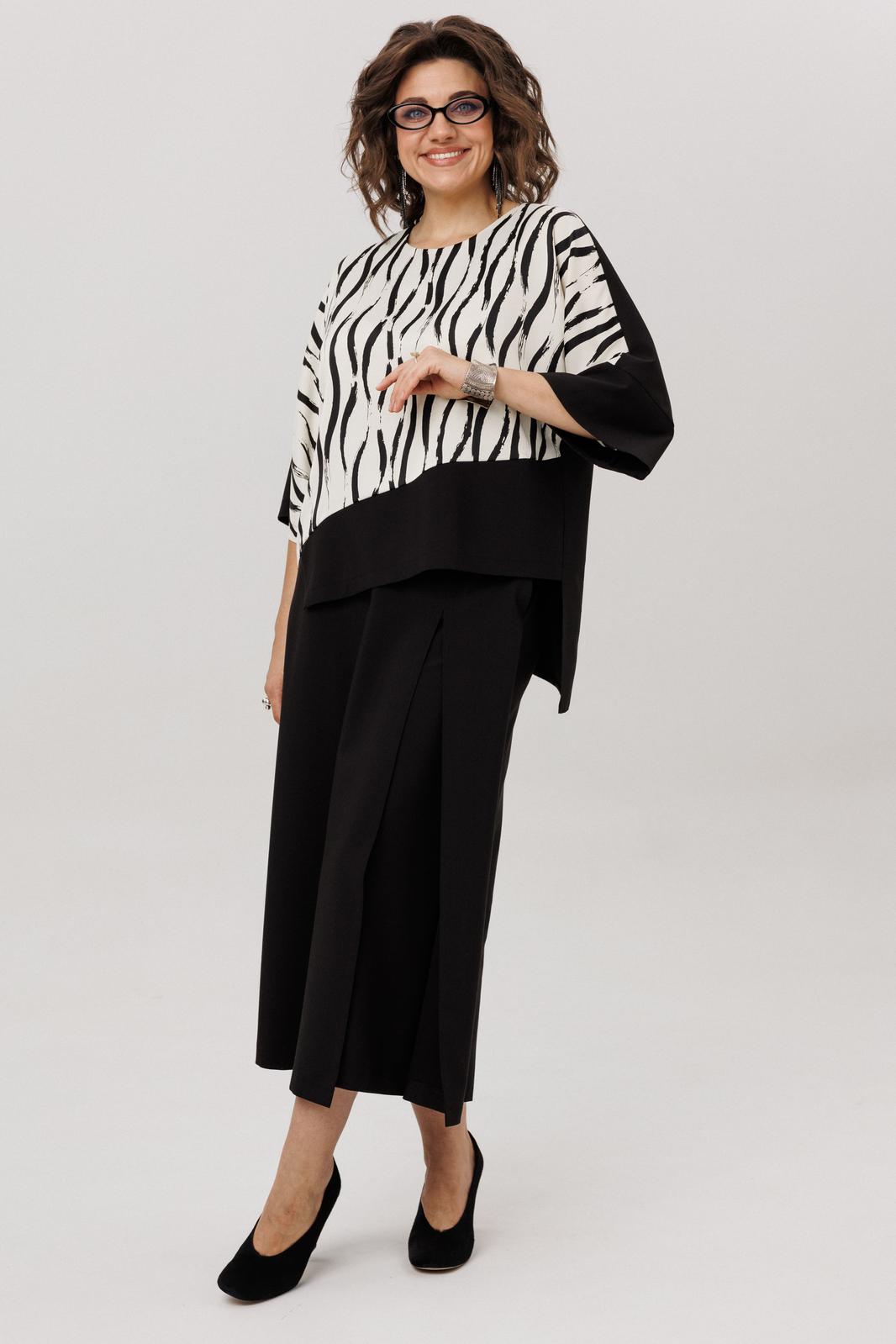 - Тип ткани: Состав (блузон): Состав 1 (спинка): вискоза 60 %, полиэстер 40% Состав 2: вискоза 65%, полиэстер 32%, спандекс 3% Состав (юбка-кюлоты): вискоза 60% полиэстер 40%;
