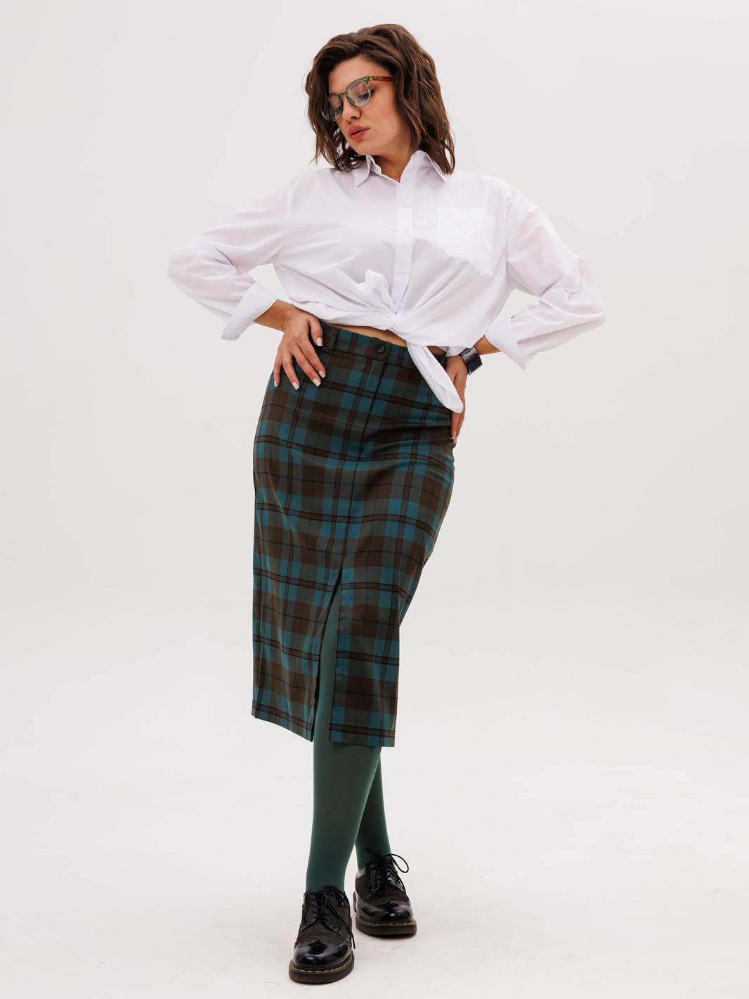 Юбка-карандаш миди длины выстраивает идеальный женственный силуэт. Её сдержанную элегантность оживляет игривый разрез по переду, добавляющий лёгкости и динамики движению. Застежка-гульфик привносит в образ ноту стильной сдержанности.