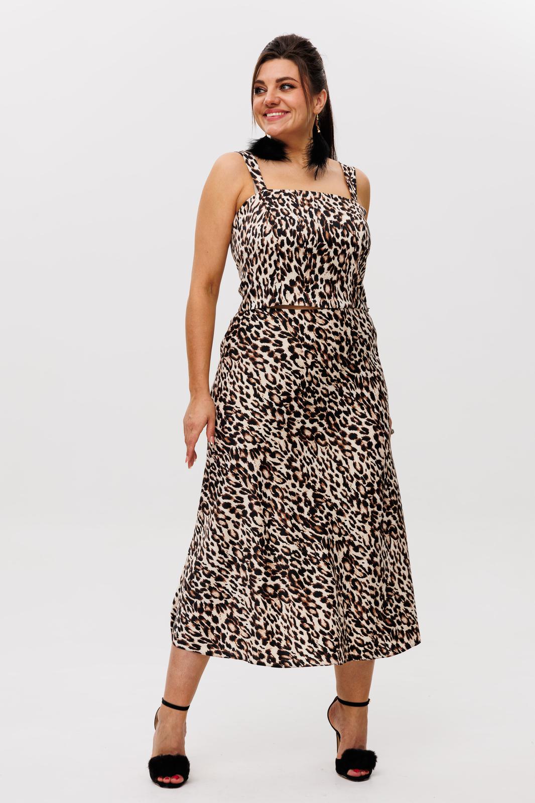 Костюм в цвете «леопардовый шик» станет изюминкой вашего гардероба, а идеи для создания образов с топом и юбкой по отдельности - бесконечны! Костюм украсит вас как в повседневной жизни, так и станет ярким образом на вечеринки, свадьбы или корпоративы.