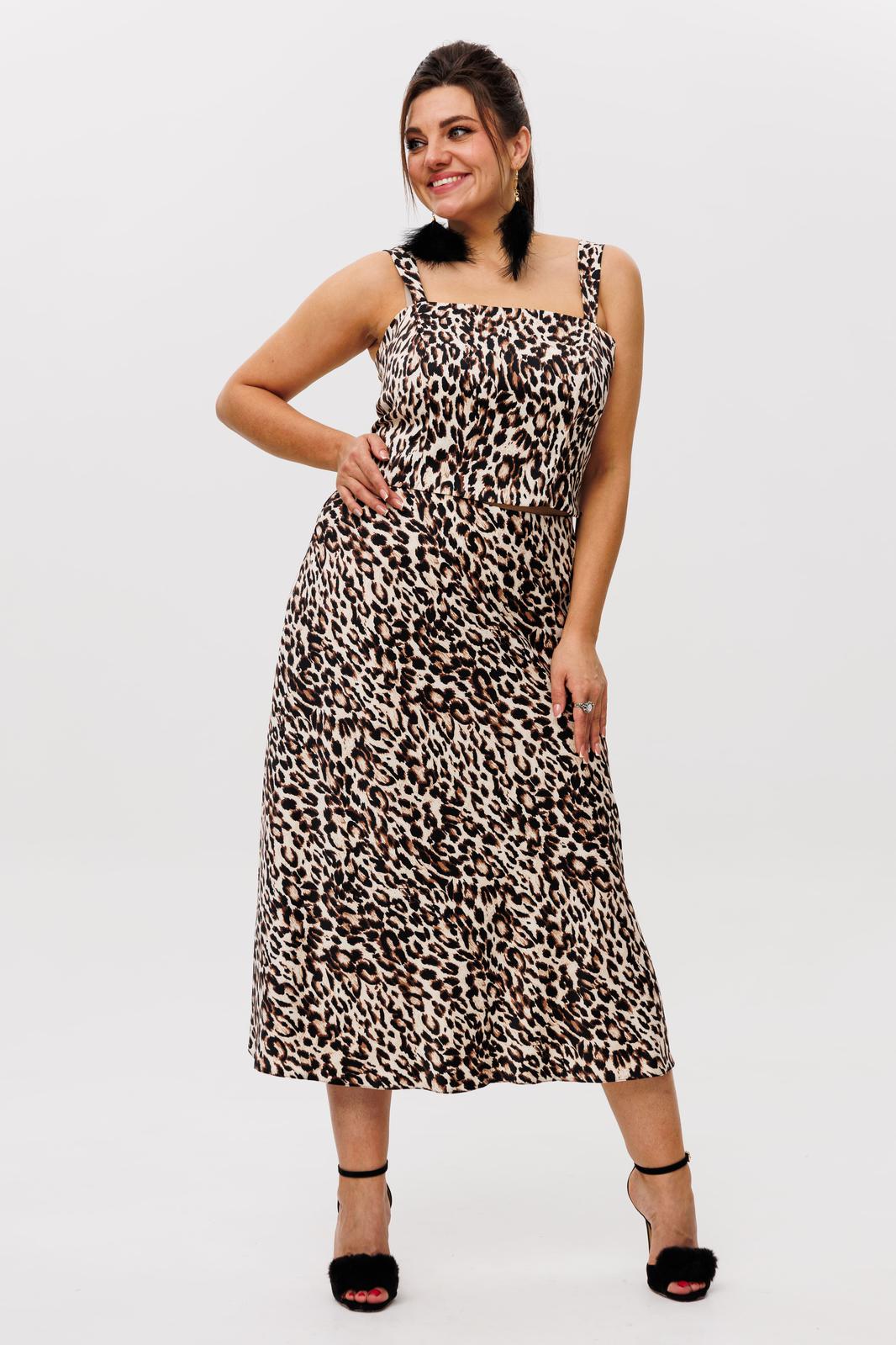 Элегантный костюм из атласа с энимал принтом, состоящий из топа и шикарной юбки от Анелли ваш лучший выбор!