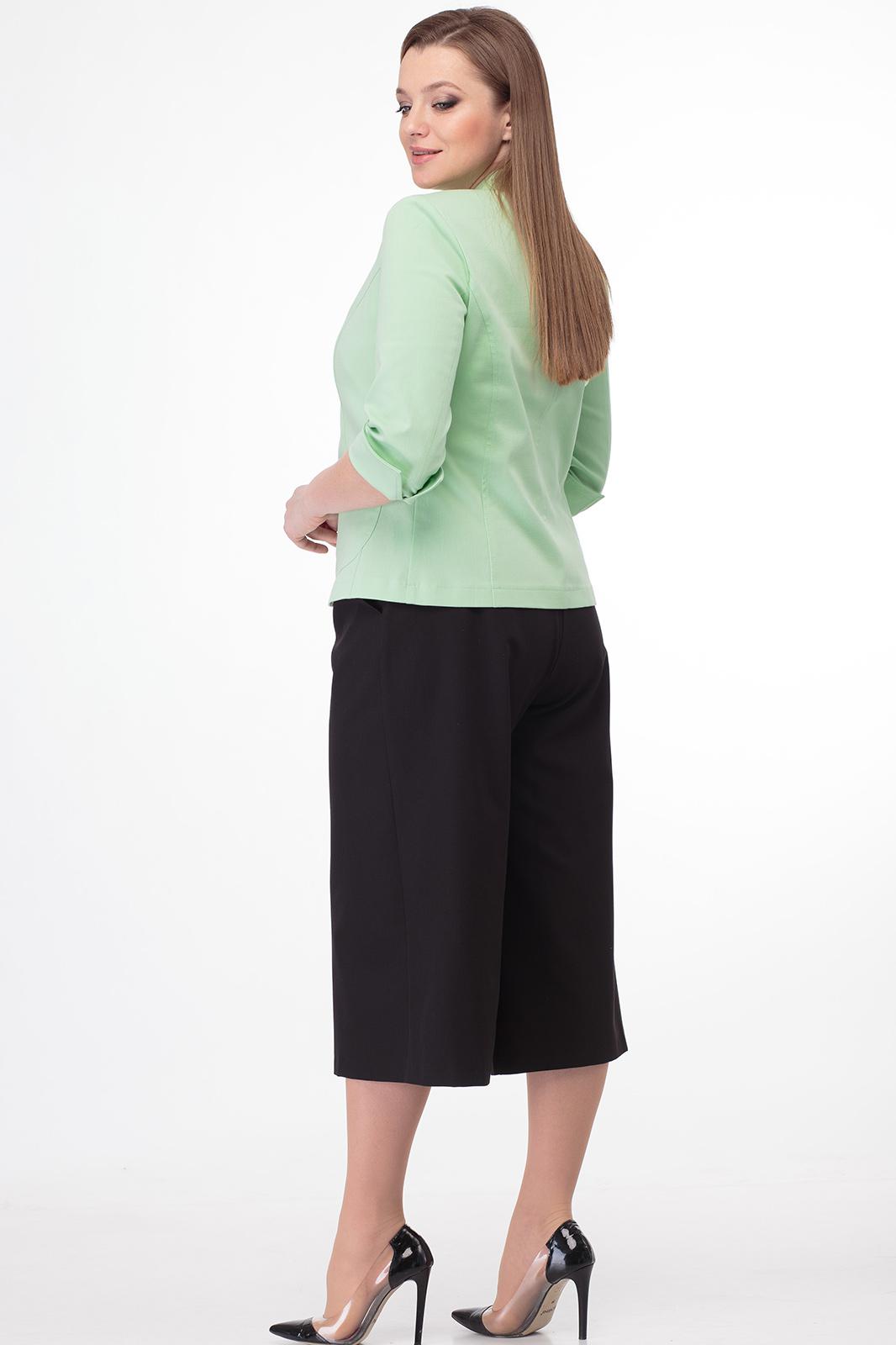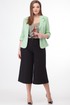 На фото жакет 143 представлен в образе с нашими моделями: кюлоты – 837 и топик – 460.