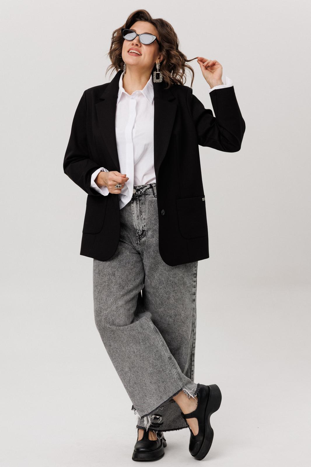 Длинный втачной рукав и два накладных кармана делают модель не только стильной, но и практичной. Жакет легко впишется в повседневный гардероб — он будет одинаково хорошо смотреться с офисными брюками, джинсами или свободными брюками, добавляя образу лёгкую небрежность.