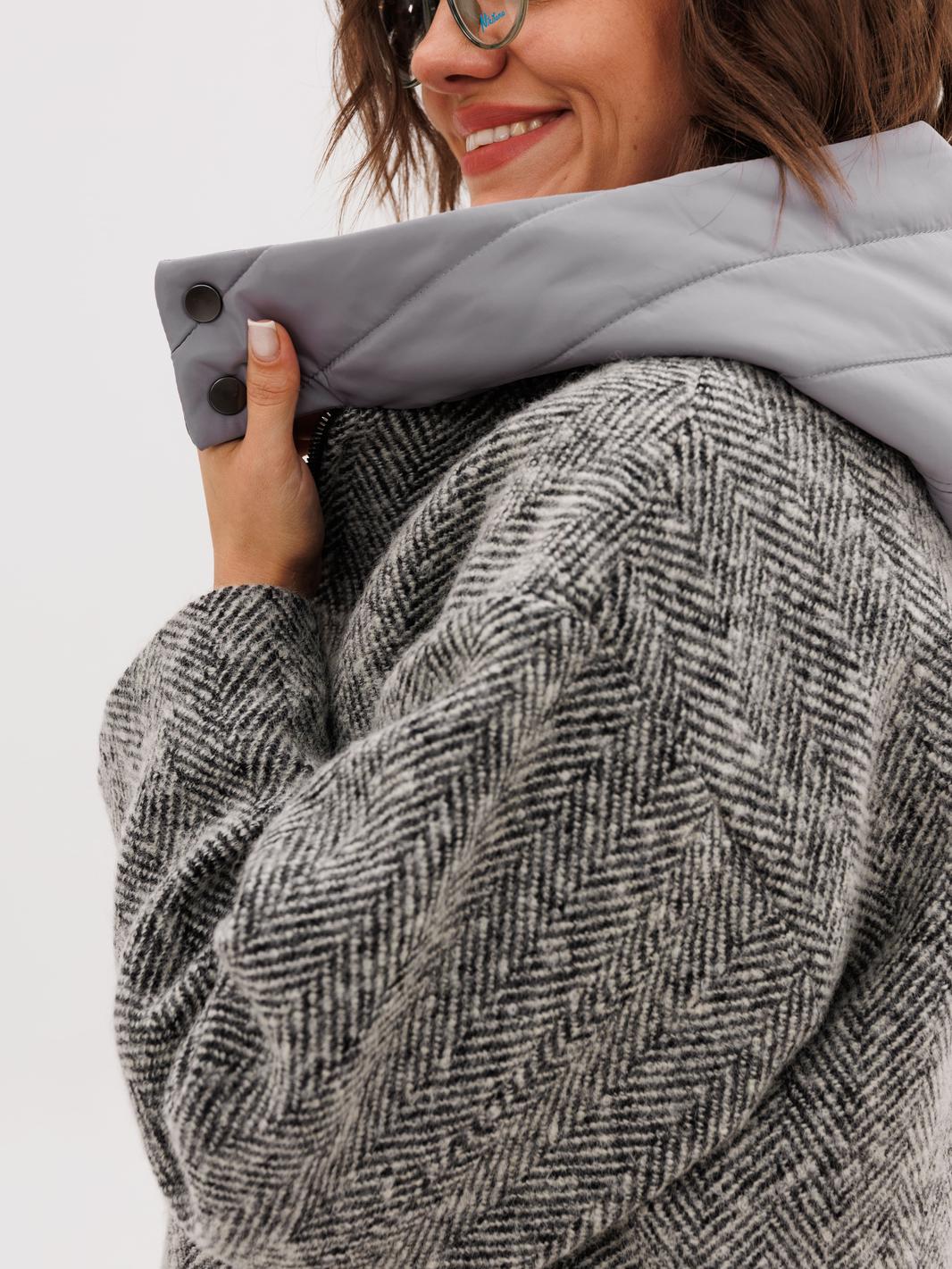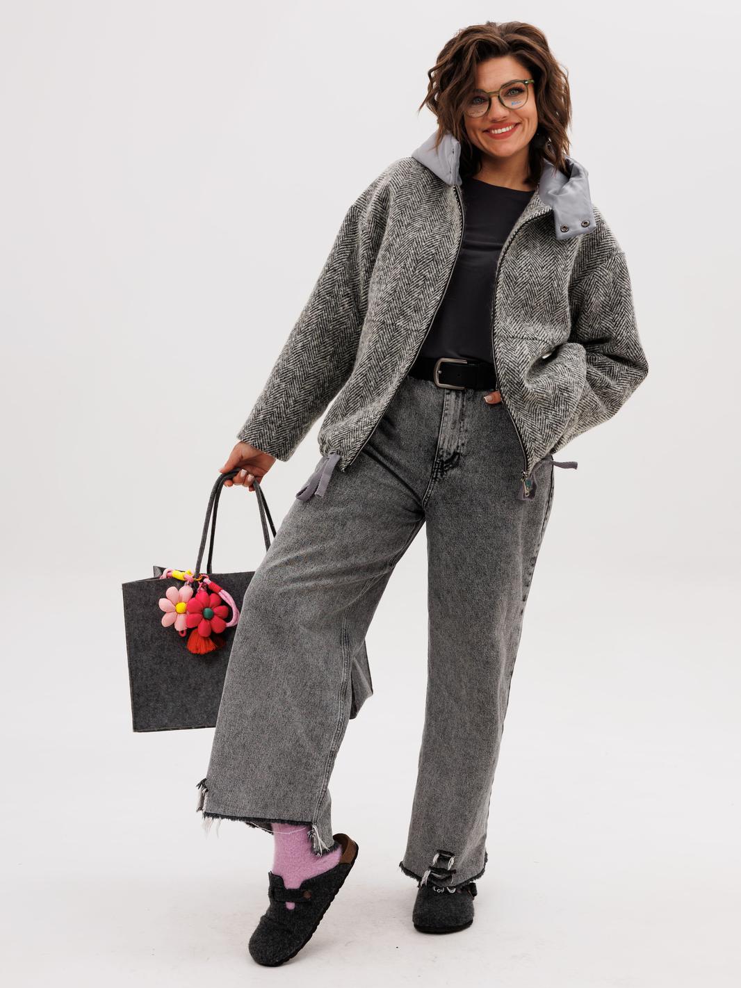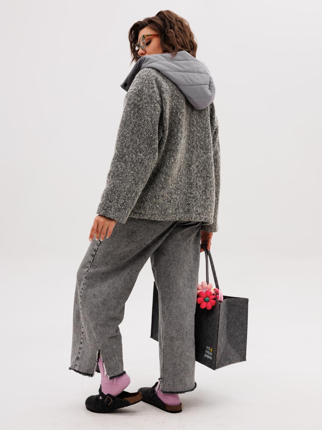 Этот жакет — идеальный спутник для переменчивой погоды межсезонья. Его прямой силуэт со спущенной линией плеч создает современный и утонченный образ, полный непринужденной элегантности. Модель выполнена на уютной подкладке, которая обеспечивает комфорт, но без утеплителя, что делает ее идеальной для теплой осени и прохладной весны.