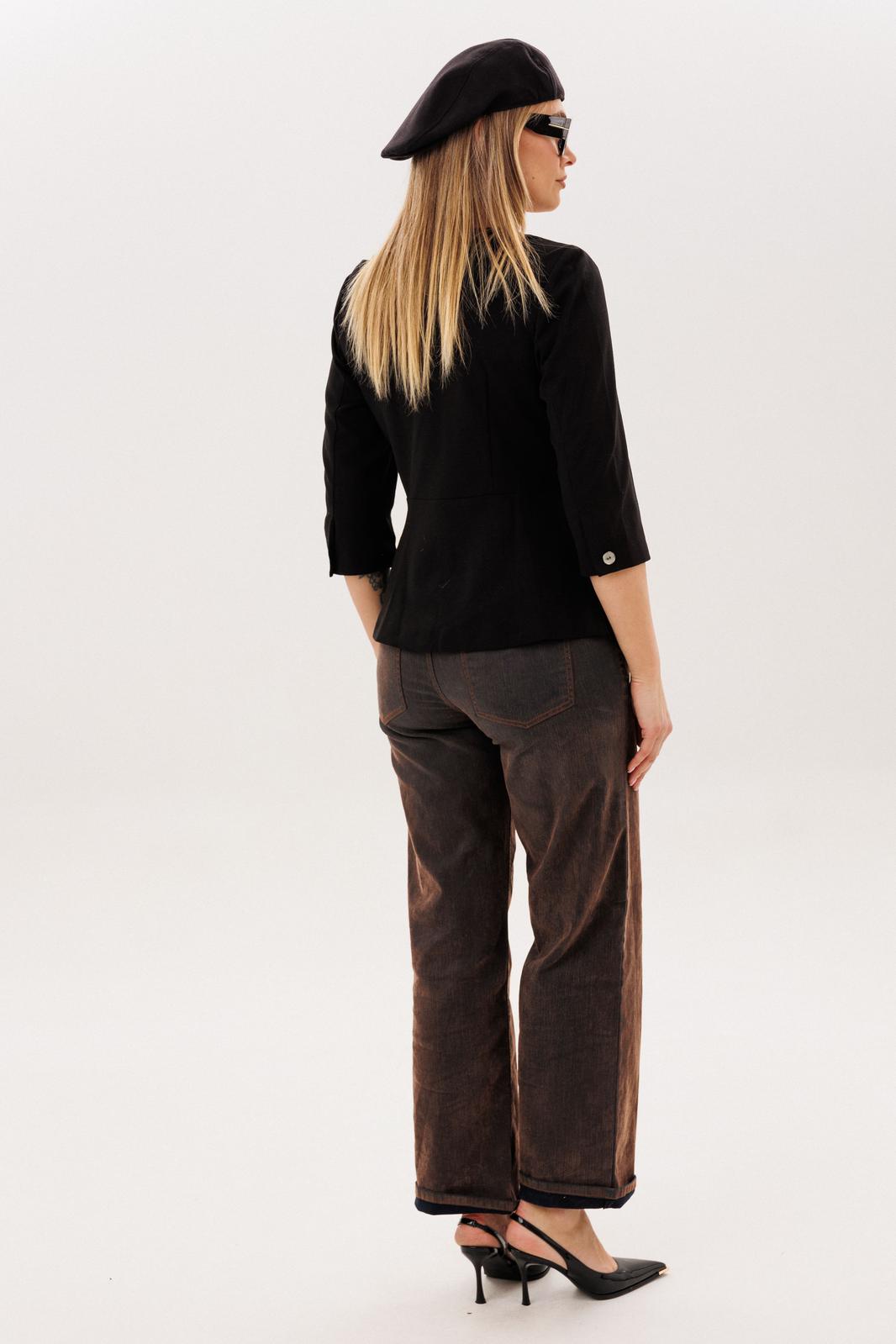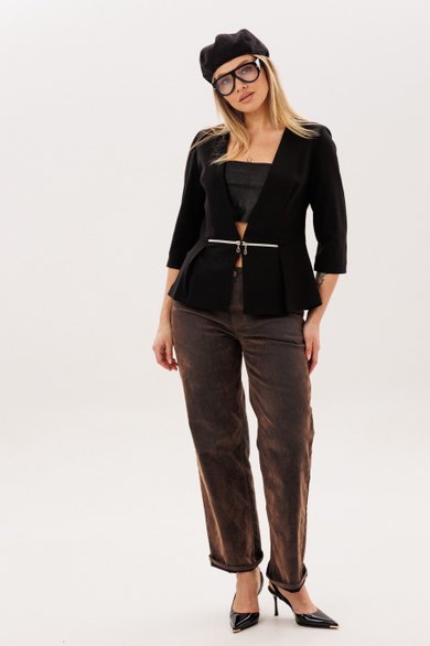 Выполненный из трикотажа и дополненный подкладкой, жакет от Анелли дарит ощущение уюта и уверенности на каждый день - он легко вписывается в повседневный гардероб, создавая образ с характером, где комфорт и женственность звучат в одной гармонии.